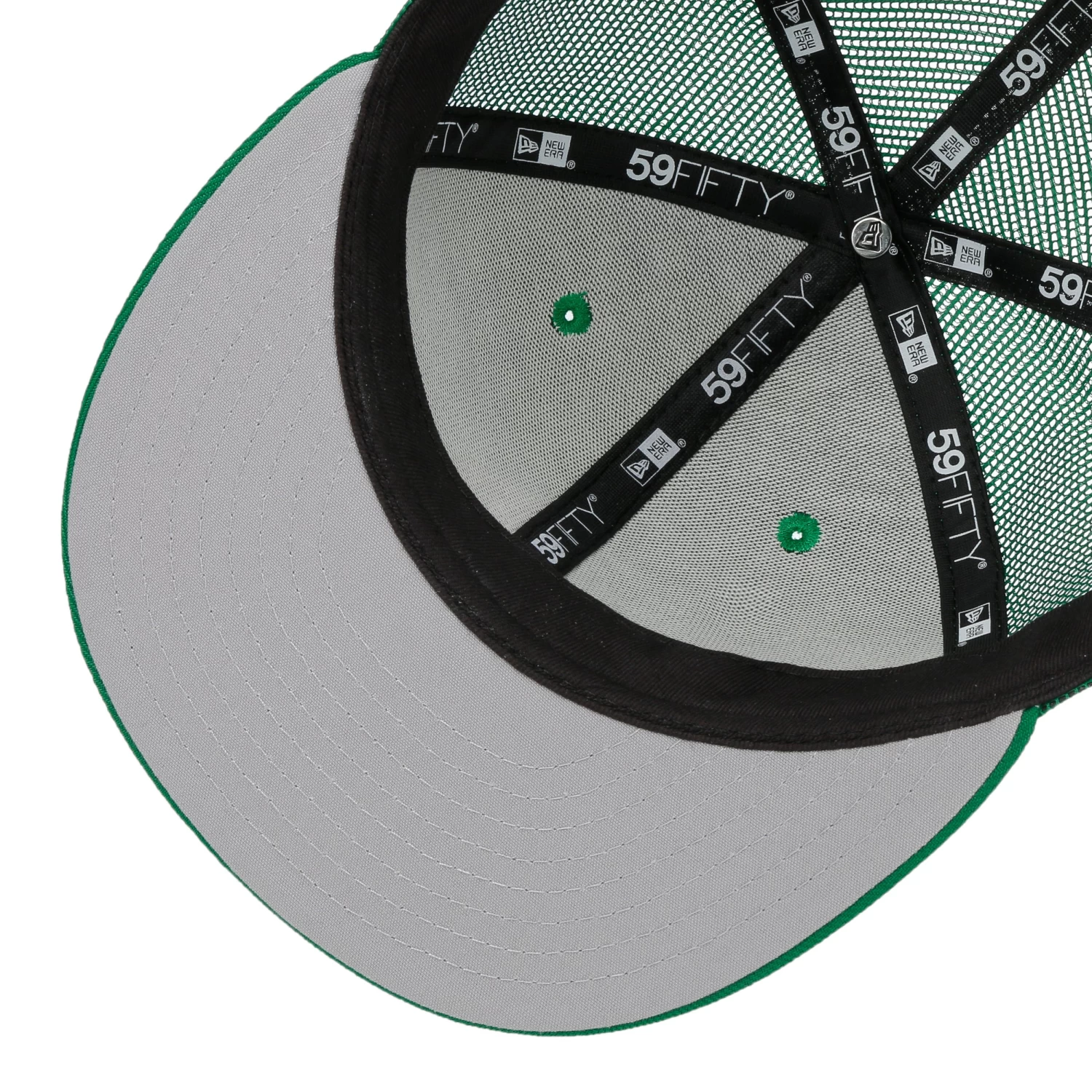 Die Fitted Cap verfügt über eine verstärkte Front und den charakteristischen geraden Visor, auf dem sich der nicht minder typische, glänzende Sticker findet.