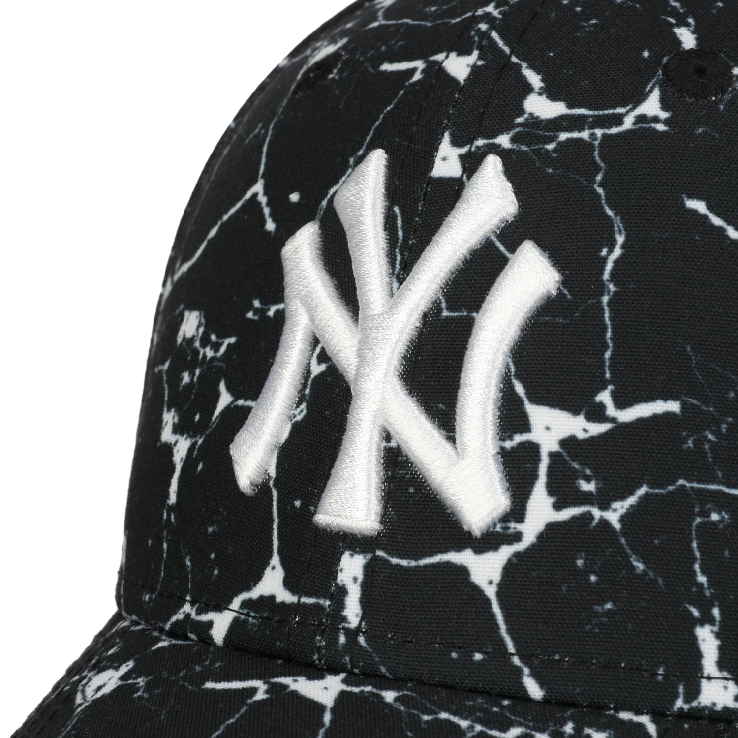 Die Basecap im konventiollen Zuschnitt kommt mit einer verstärkten Front und einem vorgebogenen Schirm von 7 cm Länge.