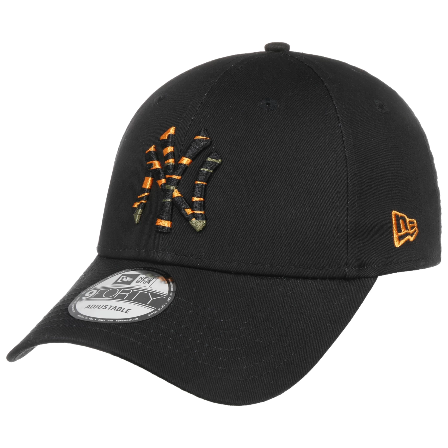 Die Basecap im konventiollen Zuschnitt kommt mit einer verstärkten Front und einem vorgebogenen Schirm von 7 cm Länge.