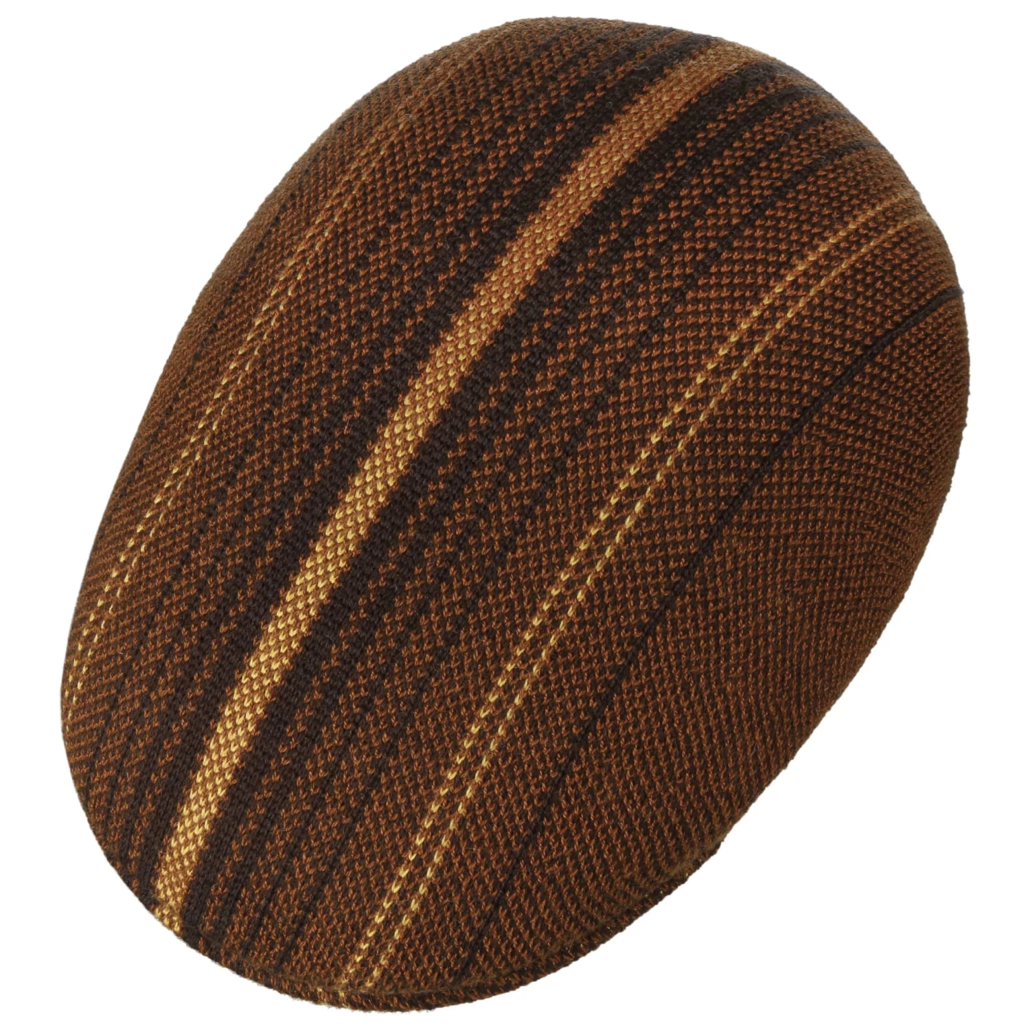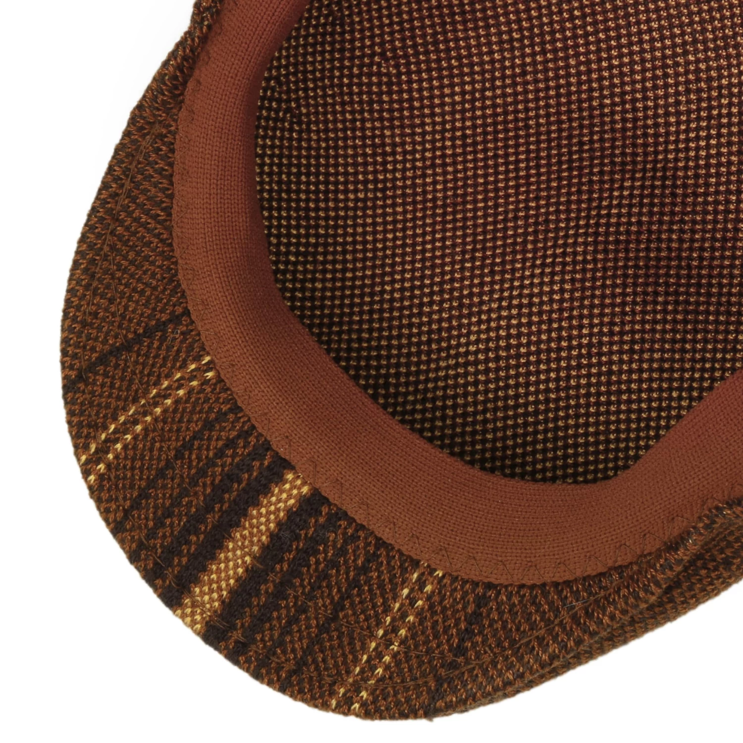 Schmale Längsstreifen ziehen sich über das zweifarbige Allover-Muster der Flatcap von Kangol und betonen ihre dynamische Form.