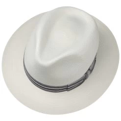 Viele Details hat der Strohhut nicht nötig, um zu überzeugen – die farblich harmonisch abgesetzte Ripsbandgarnitur mit Markenpin genügt ihm. Sein Charisma vollendet jede Garderobe ihres Trägers von lässig bis elegant.