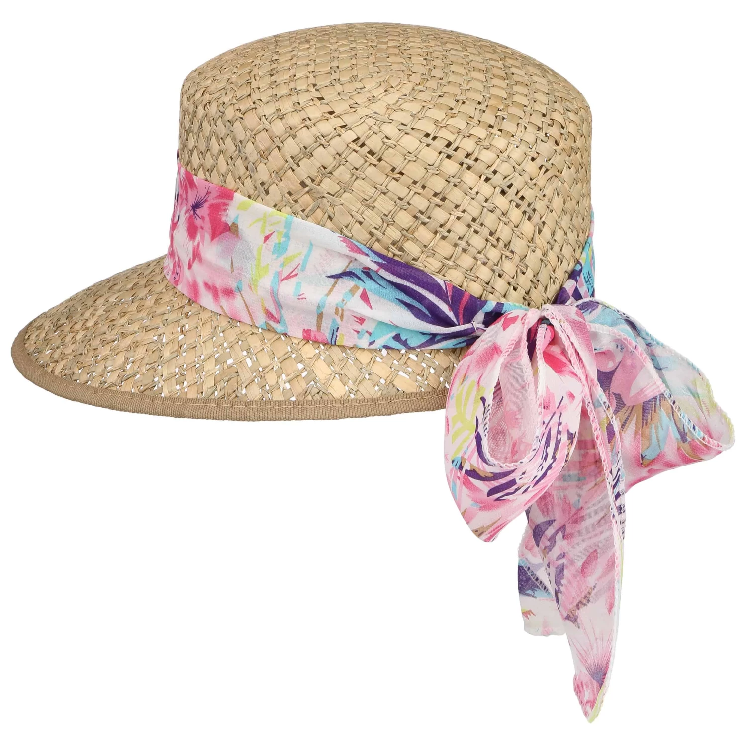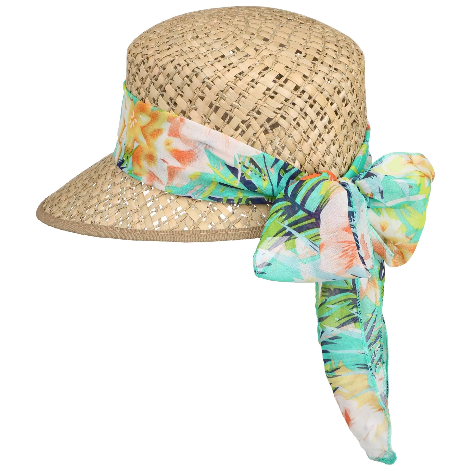 Wer gleichermaßen gerne Hüte und Kappen trägt, muss nicht lange überlegen, um sich für die Strohcap zu entscheiden, deren lang gezogener Visor sich hinten in angedeuteter Krempe fortsetzt. Damit vereint Lipodo gekonnt lässig eleganten Sommerhut und sportliche Schildmütze, von einer blumigen Stoffgarnitur modisch aufgewertet.