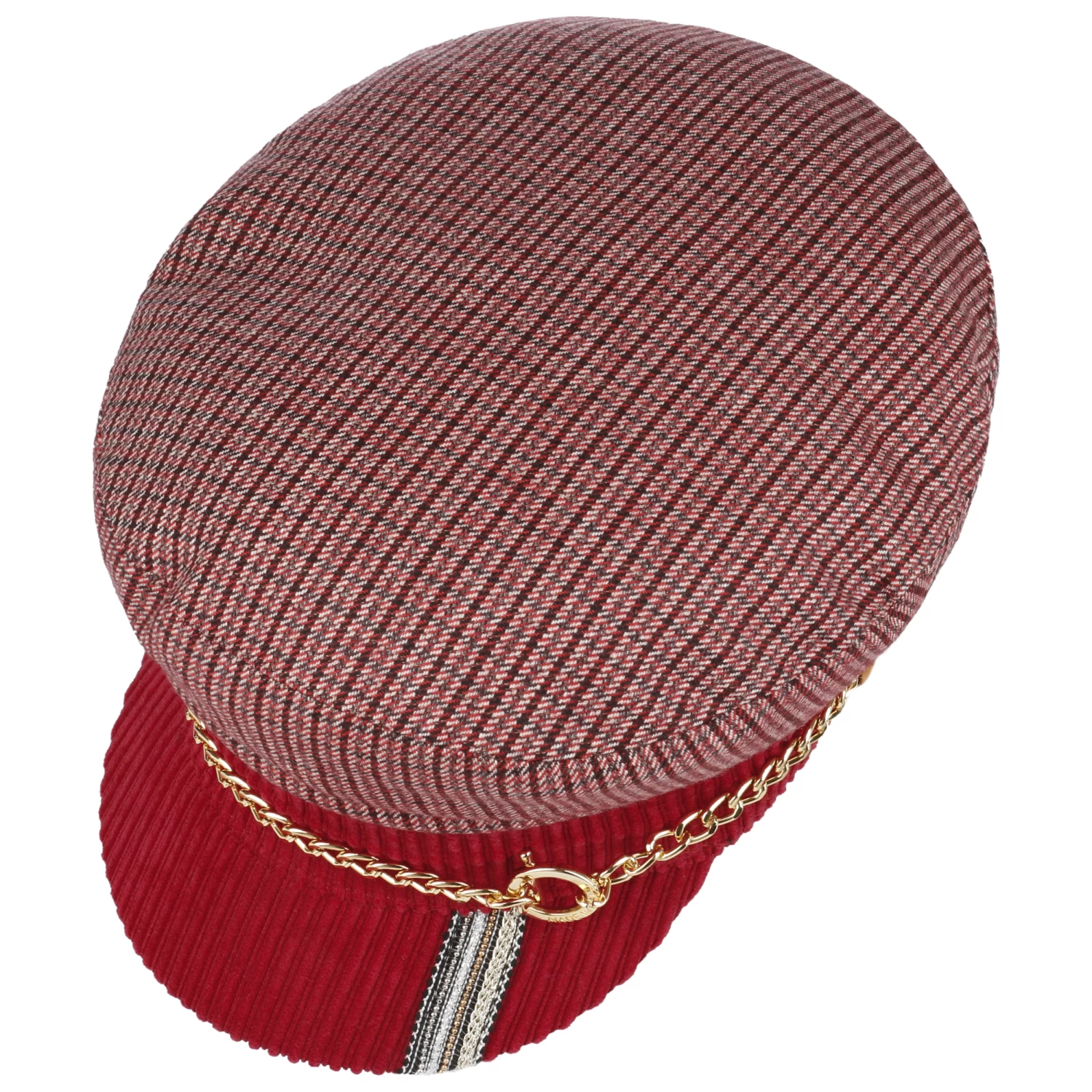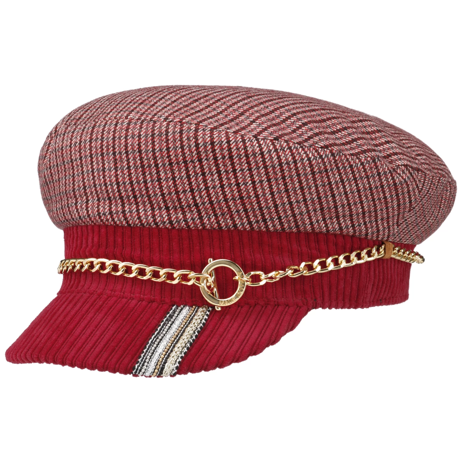 Schirm und Steg heben sich unifarben von der Krone ab. Eine golden schimmernde Zierkette verleiht der Baker-Boy-Mütze maritimen Charme und raffinierte Eleganz. Für hohen Tragekomfort sorgen wärmende Wolle und atmungsaktive Baumwolle im Materialmix.