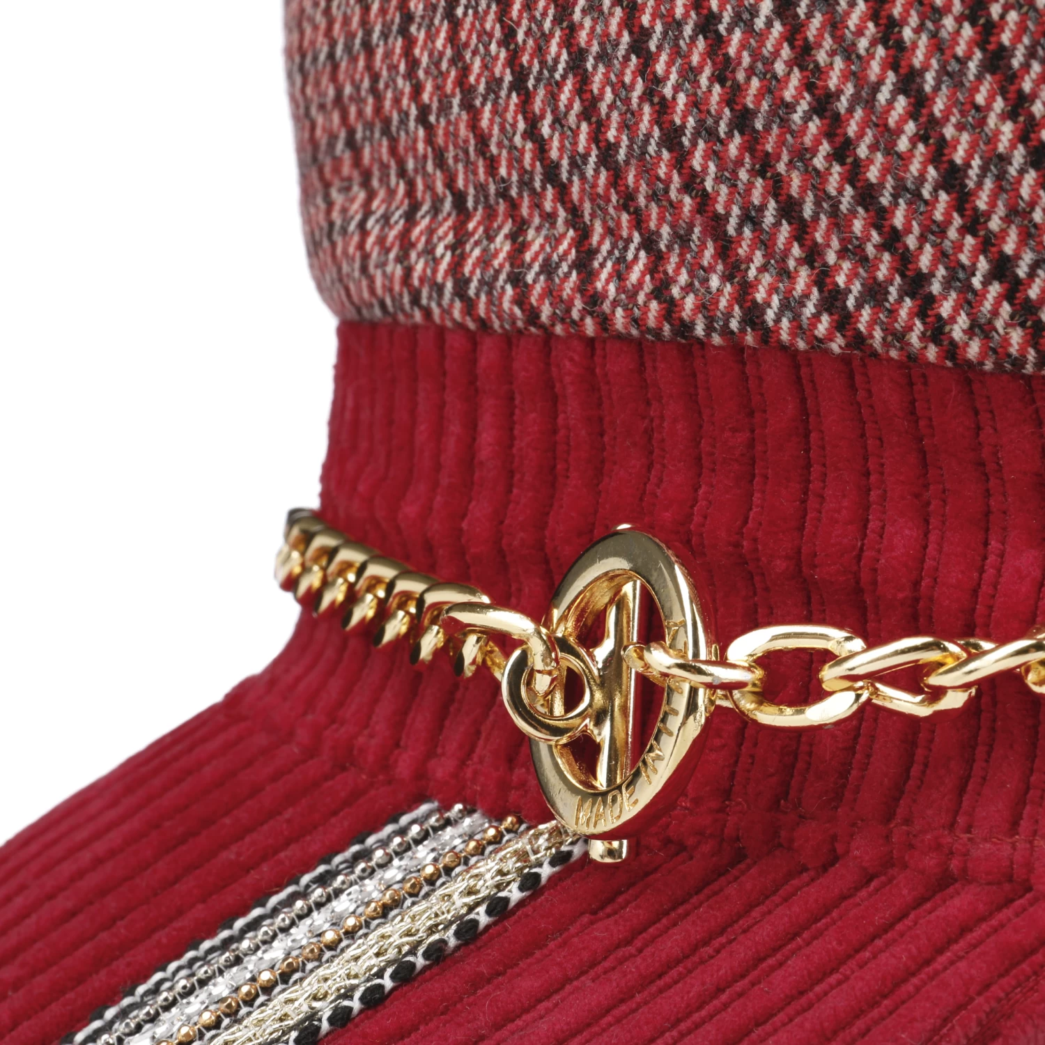 Die Kapitänsmütze aus dem Hause Alfonso D´Este gewinnt durch ihr zart kariertes Muster eine aparte Anmutung.