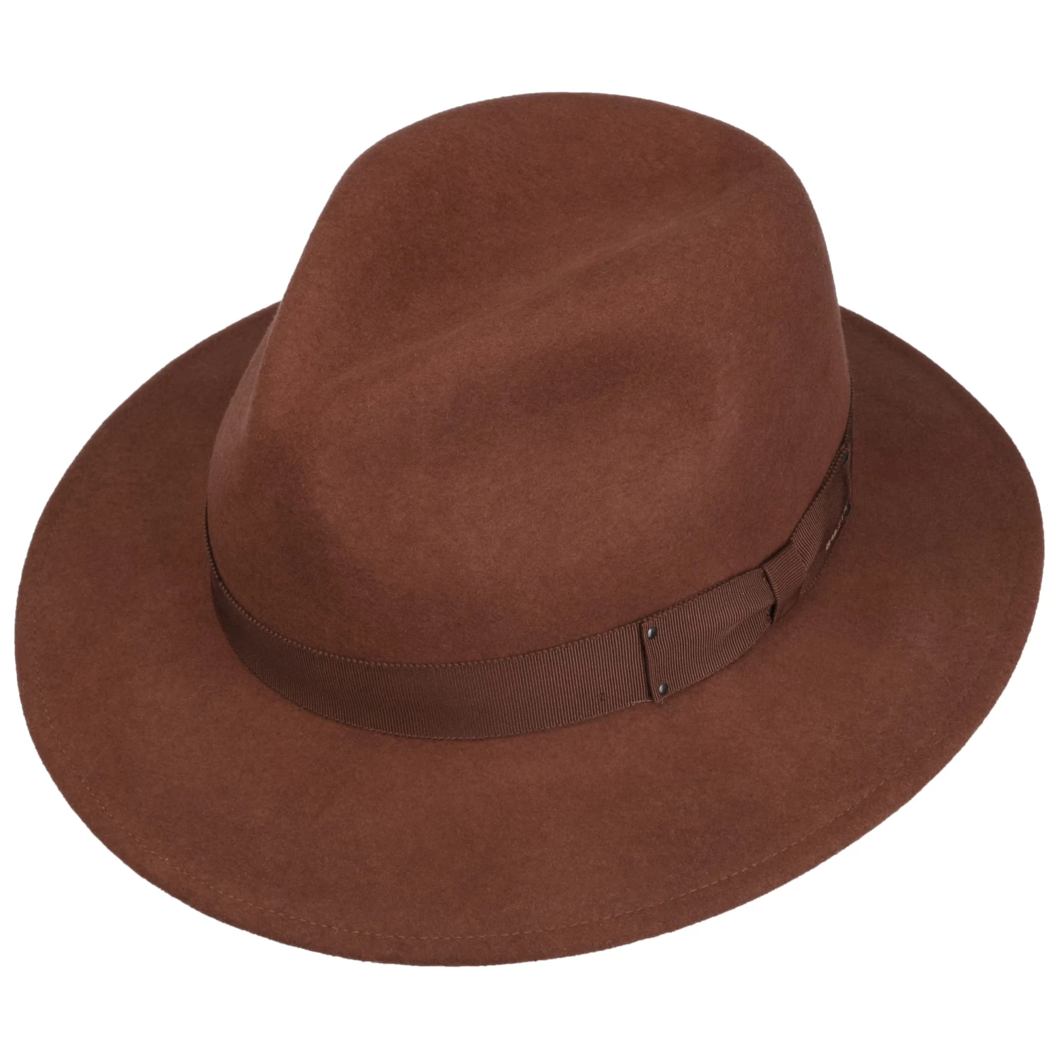 Dazu gesellt sich eine farblich abgesetzte Ripsbandgarnitur mit Schleife und Markenschriftzug. Dem eleganten Erscheinungsbild des schicken Filzhuts ist kaum anzusehen, wie robust er ist: Mit knautschbaren und wasserabweisenden Eigenschaften ist er für unterwegs bestens ausgestattet – die Witterung beeinträchtigt weder die Qualität noch seine Schönheit.