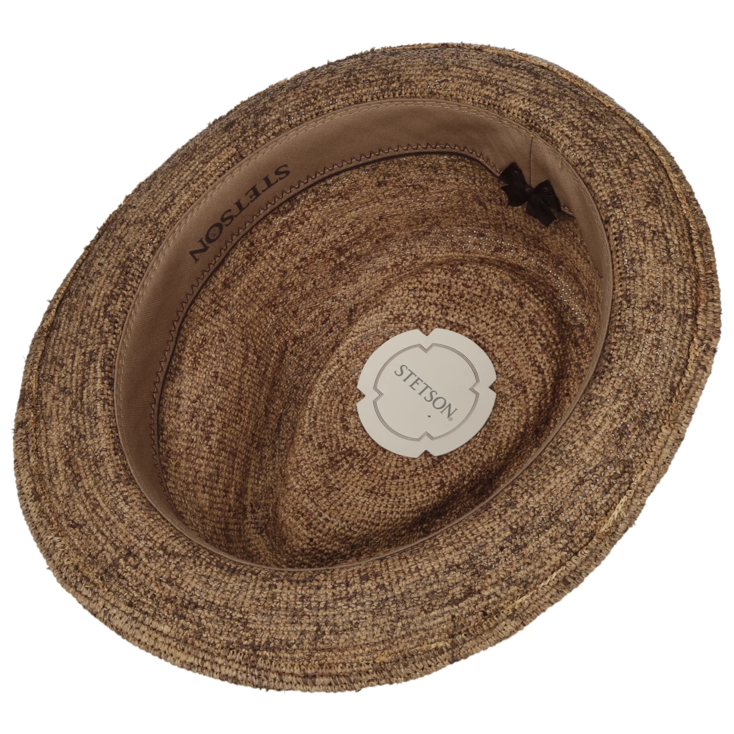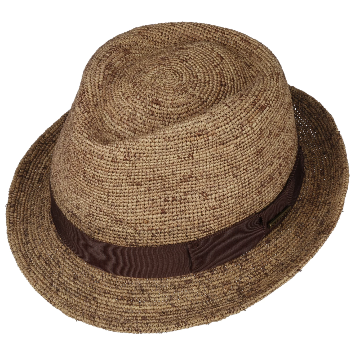 Gefertigt aus 100% Stroh, verbindet der Fedora die luftig-leichten Trageeigenschaften des Naturmaterials mit einem lässigen, gehäkelt wirkenden Design.