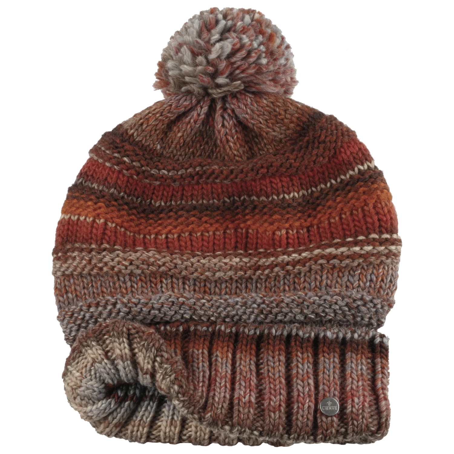 Das dreidimensionale Strickmuster der trendigen Bommelmütze von Lierys stapelt sich in fülliger Ballonform bis weit über den Hinterkopf, um dort mit einem lässig fallenden Oversize-Format den Winter begrüßen zu können.