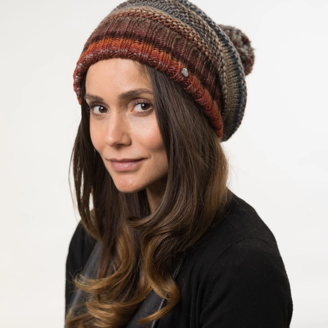 Die hochwertige Schurwollmischung bringt passend zur Jahreszeit angenehme Wärme in die gestrickte Pudelmütze und schmiegt sich als doppellagiger Umschlag vollkommen gemütlich um die Ohren.