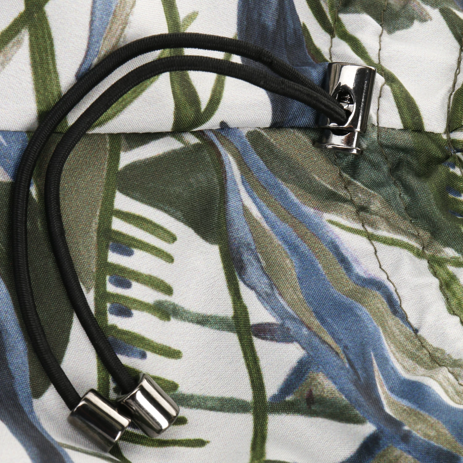 Sie lässt sich klein zusammenfalten und griffbereit verstauen. So ist sie unterwegs sofort zur Hand, falls es zu einem plötzlichen Sommergewitter kommt. Die Kapuze mit floralem Print passt zu Jacken und Shirts und kann selbst zu Kleidern getragen werden. Sie wird einfach über den Kopf gestülpt.