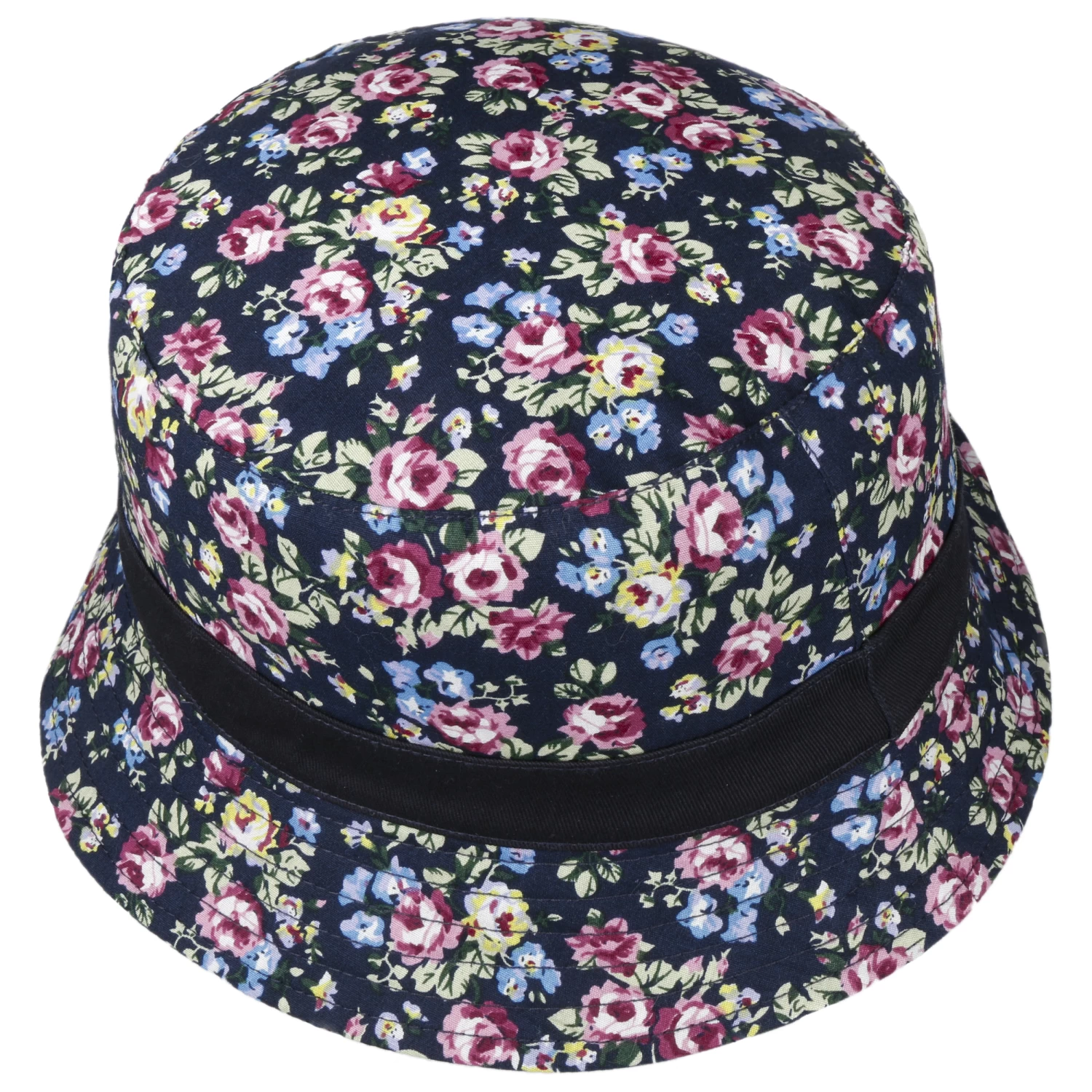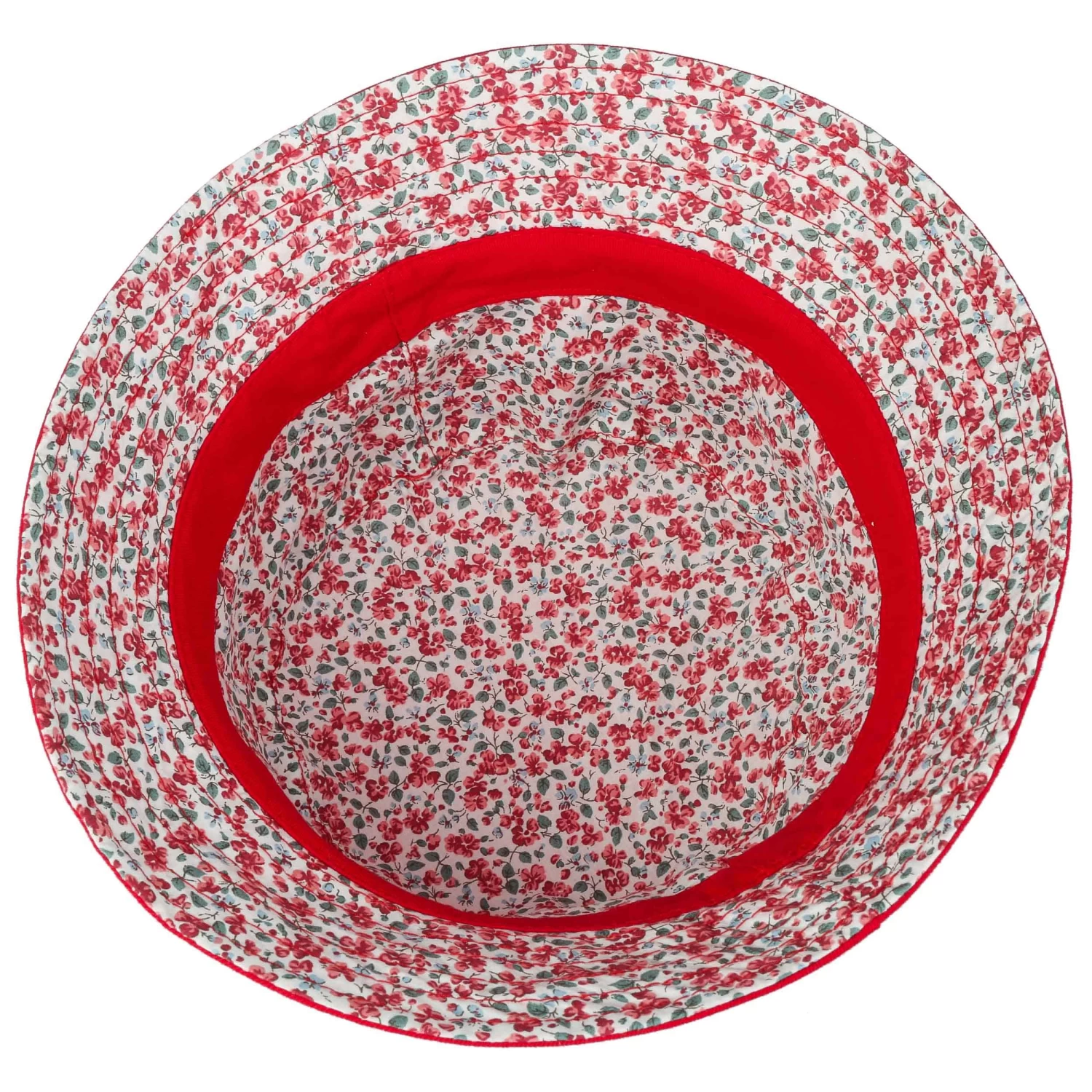 Der bezaubernde Stoffhut ist aus 100% Baumwolle gefertigt und präsentiert sich gleich von zwei schönen Seiten: einerseits unifarben mit dezenter Blümchengarnitur, gewendet mit blumigem Allover-Druck und einfarbigem Zierband – filigrane Millefleurs zum Verlieben. Der pflegeleichte Sommerhut ist knautschbar und passt in nahezu jede Tasche.