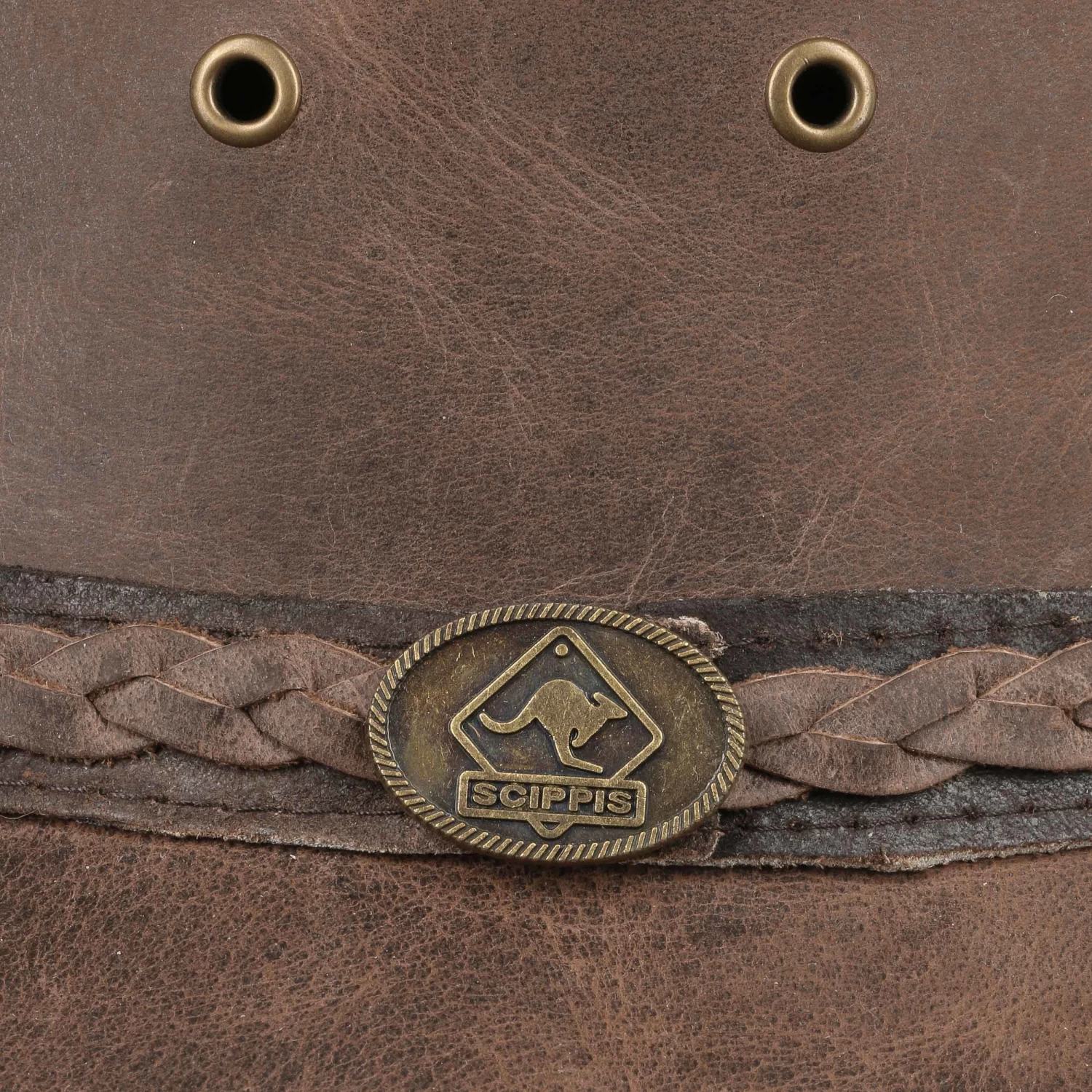 Über der lässig ausladenden Krempe zeigt der Lederhut eine lederne Garnitur mit geflochtenem Lederband und Nieten, an der Krone ist er mit Luftösen für eine angenehme Klimatisierung ausgestattet, innen mit komfortablem Stretchschweißband. Ösen zur Befestigung des Kinnbands sind selbstverständlich ebenfalls vorhanden. Da darf es auch mal turbulent zugehen – ihn trägt der Herr mit Stolz.