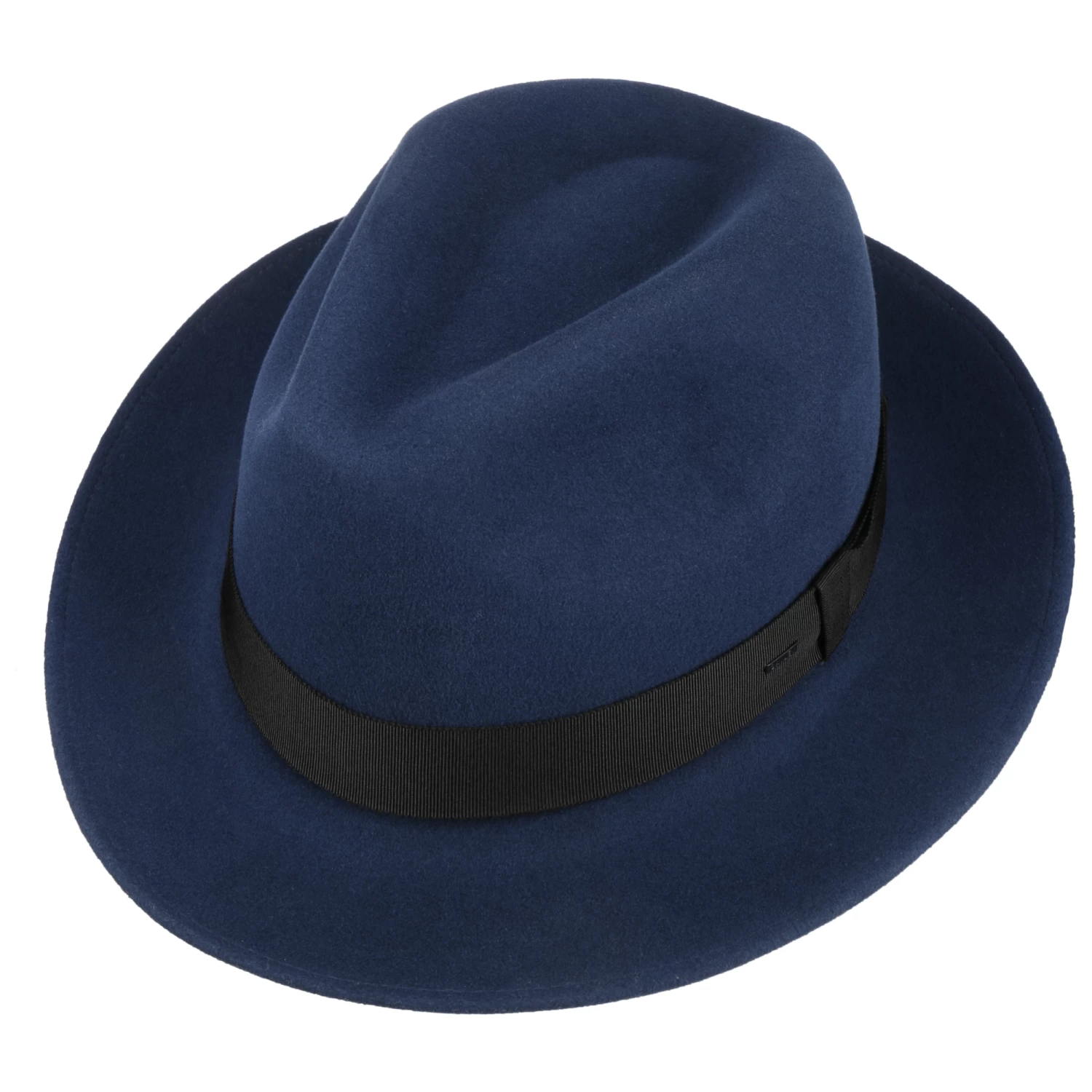 Der Träger stellt mit dem Player von Bailey 1922 seinen Geschmack unter Beweis: Hochwertiger Wollfilz in geschmeidig robuster Qualität und unifarbenem Look sowie die leicht aufgebogene Krempe und die kontrastfarbene Garnitur aus Ripsband verschaffen der Kopfbedeckung stilvolle Eleganz, die die Garderobe um eine edle Note ergänzt.