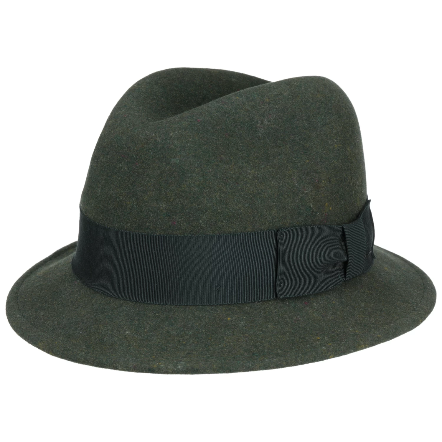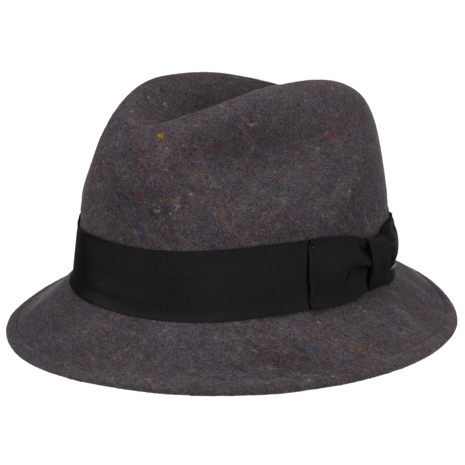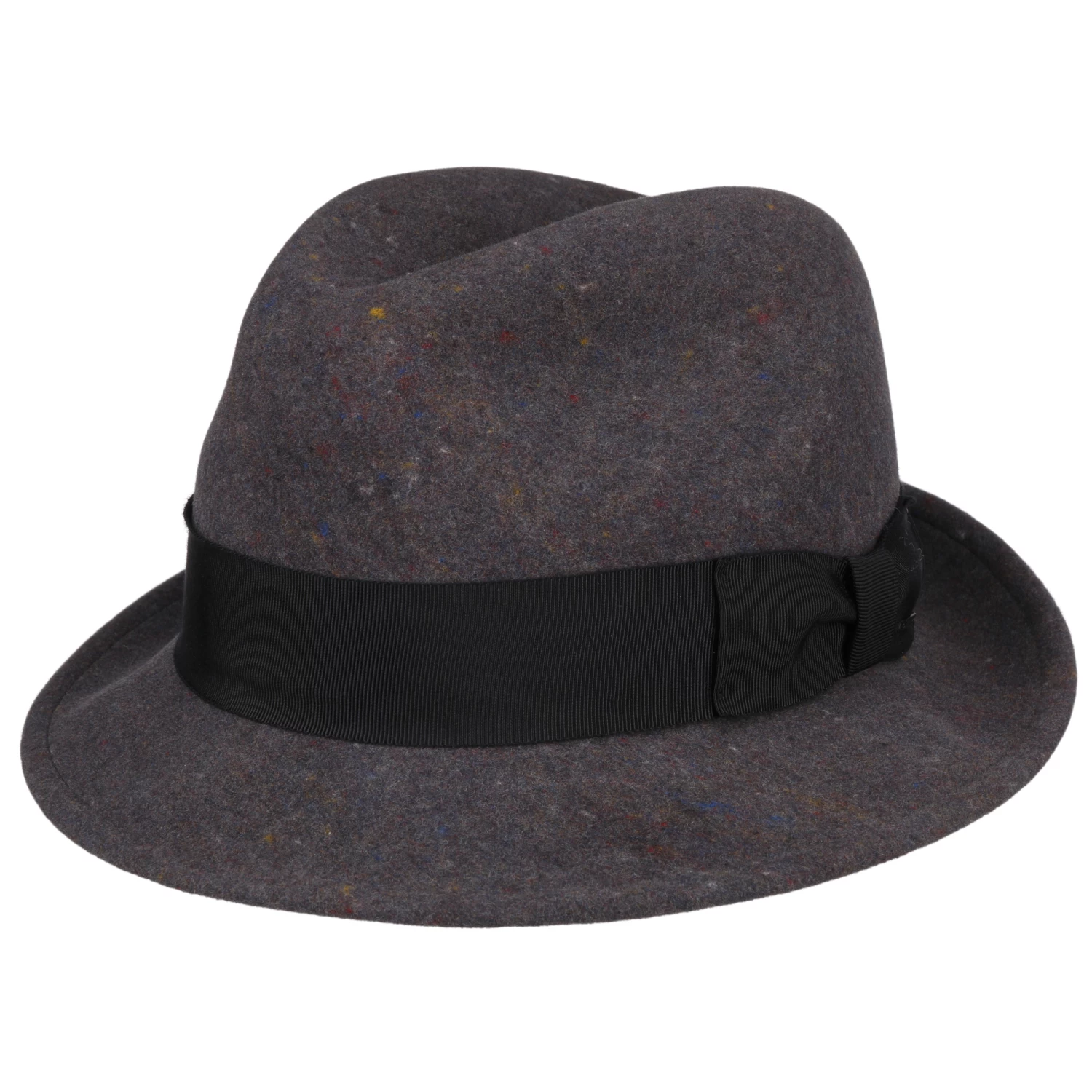 Es sorgt dafür, dass dieser farbenfroh melierte Filzhut auch an feucht-kalten Herbsttagen seinen Stil und seine wärmende Wirkung behält. Und dabei hervorragend aussieht. Das verdankt Hutchins unter anderem dem breiten, kontraststarken Ripsband, das einen Hauch von Eleganz ausstrahlt.