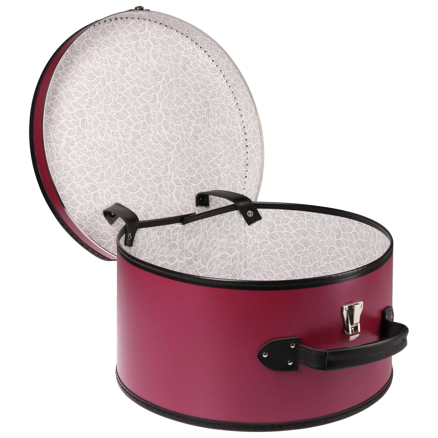 Deshalb gibt es den harmonisch geformten Hutkoffer von Lierys, aus stabiler Pappe gefertigt, mit schickem Kunstleder überzogen, an den Kanten farblich abgesetzt verstärkt. Hier ist der Lieblingshut zu Hause gut verwahrt. Damit er auch auf Reisen dabei sein kann, ist die Box mit Schnappverschluss und Tragegriff ausgestattet.