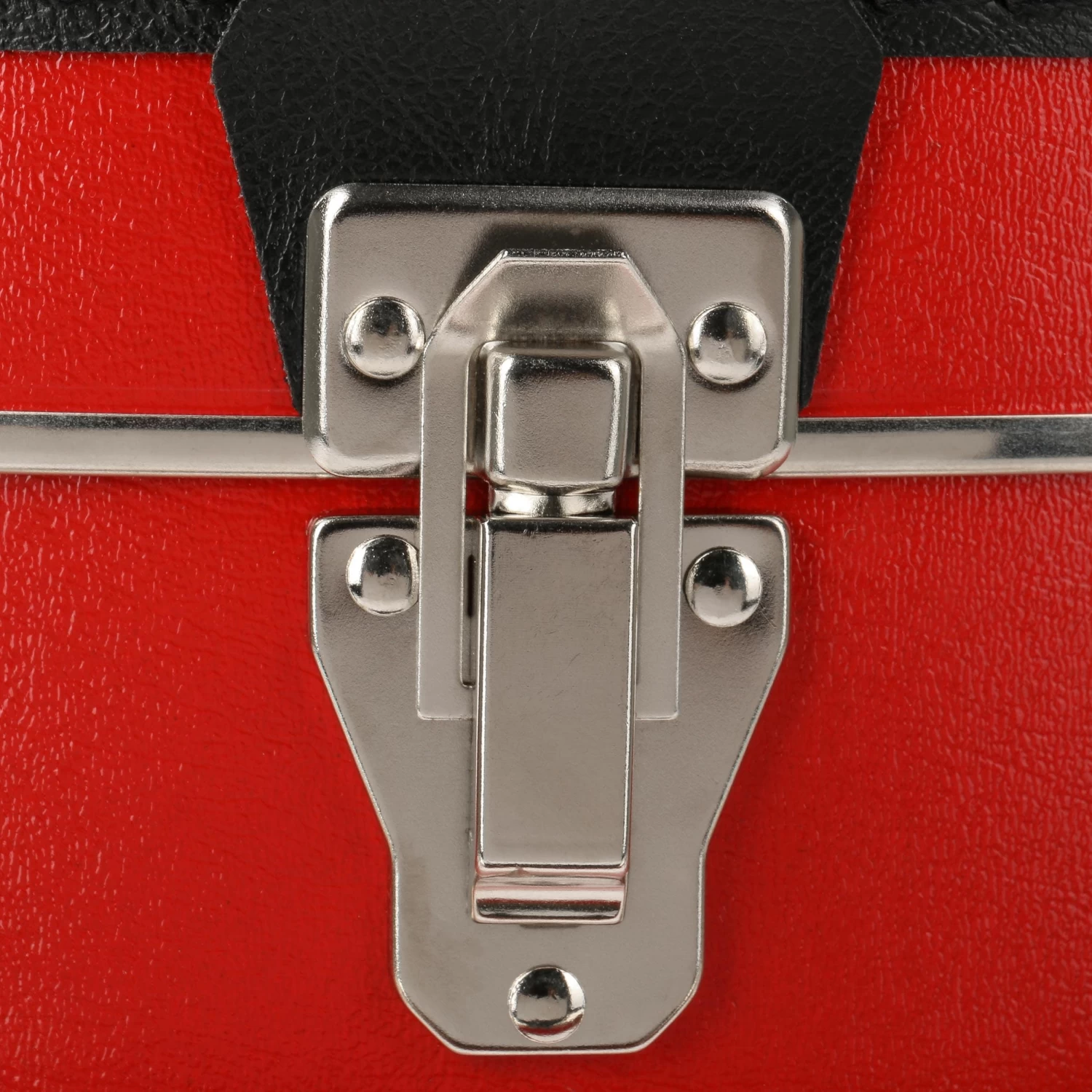 Dieser robuste Hutkoffer aus Kunstleder besticht durch ein leuchtendes Rot, welches elegant erstrahlt ob unterwegs oder daheim in der Garderobe.