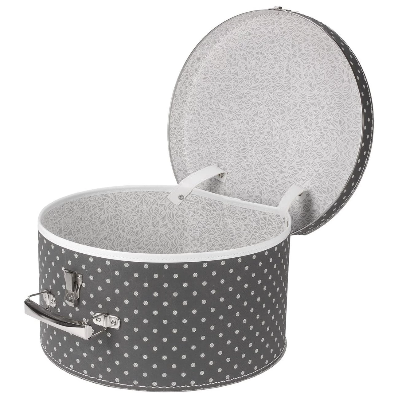 Der robuste Hutkoffer weiß optisch mit seinem zeitlos hübschen Pünktchenmuster vollends zu überzeugen.