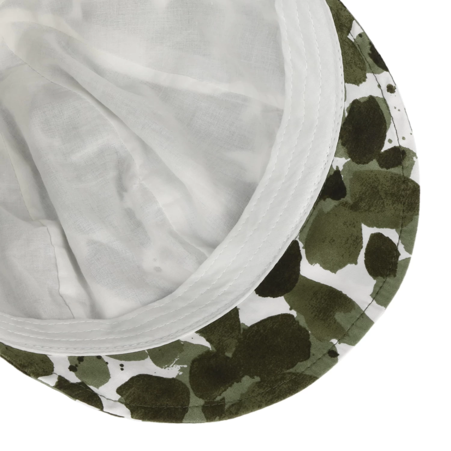 Ausgesprochen sommerlich präsentiert sich die Ballonmütze von Seeberger im Allover-Print mit apartem Blättermuster.