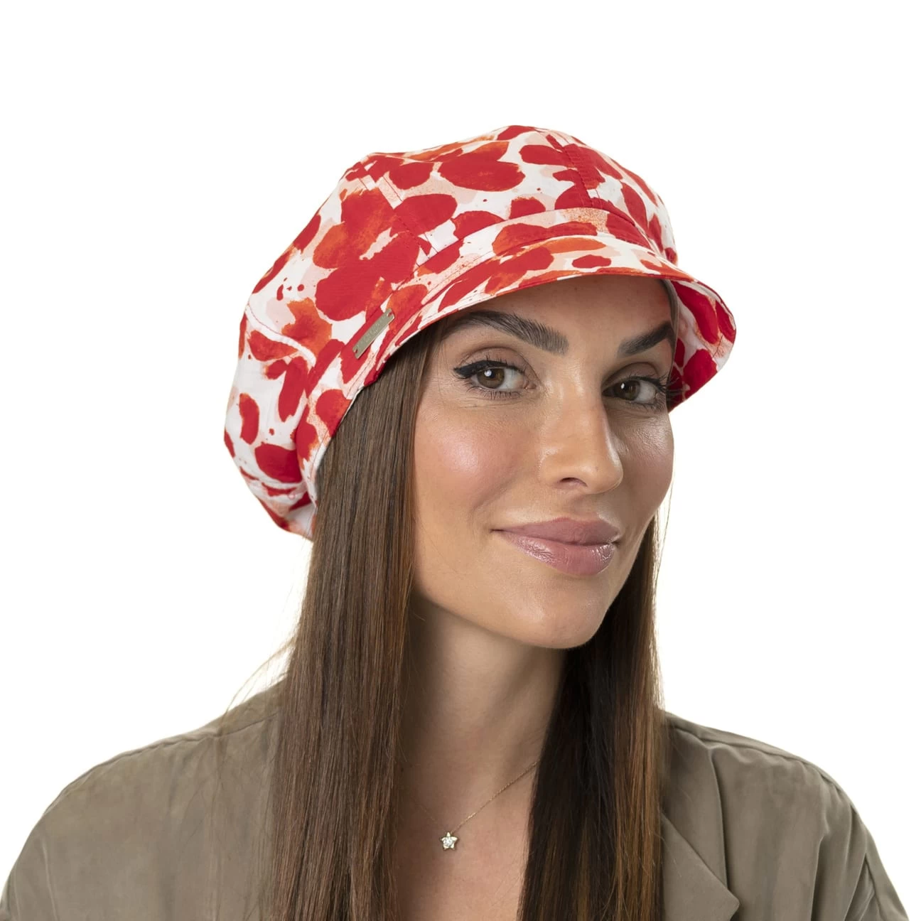 Sommerliche Leichtigkeit bieten auch das Gewebe und Futter aus 100% atmungsaktiver und hautsympathischer Baumwolle. Zum femininen Kleid kombiniert oder zur Jeans und T-Shirt getragen, macht die Kappe stets einen pfiffigen Eindruck. Ein am Hinterkopf integriertes Stretchband sorgt für eine bequeme Passform.