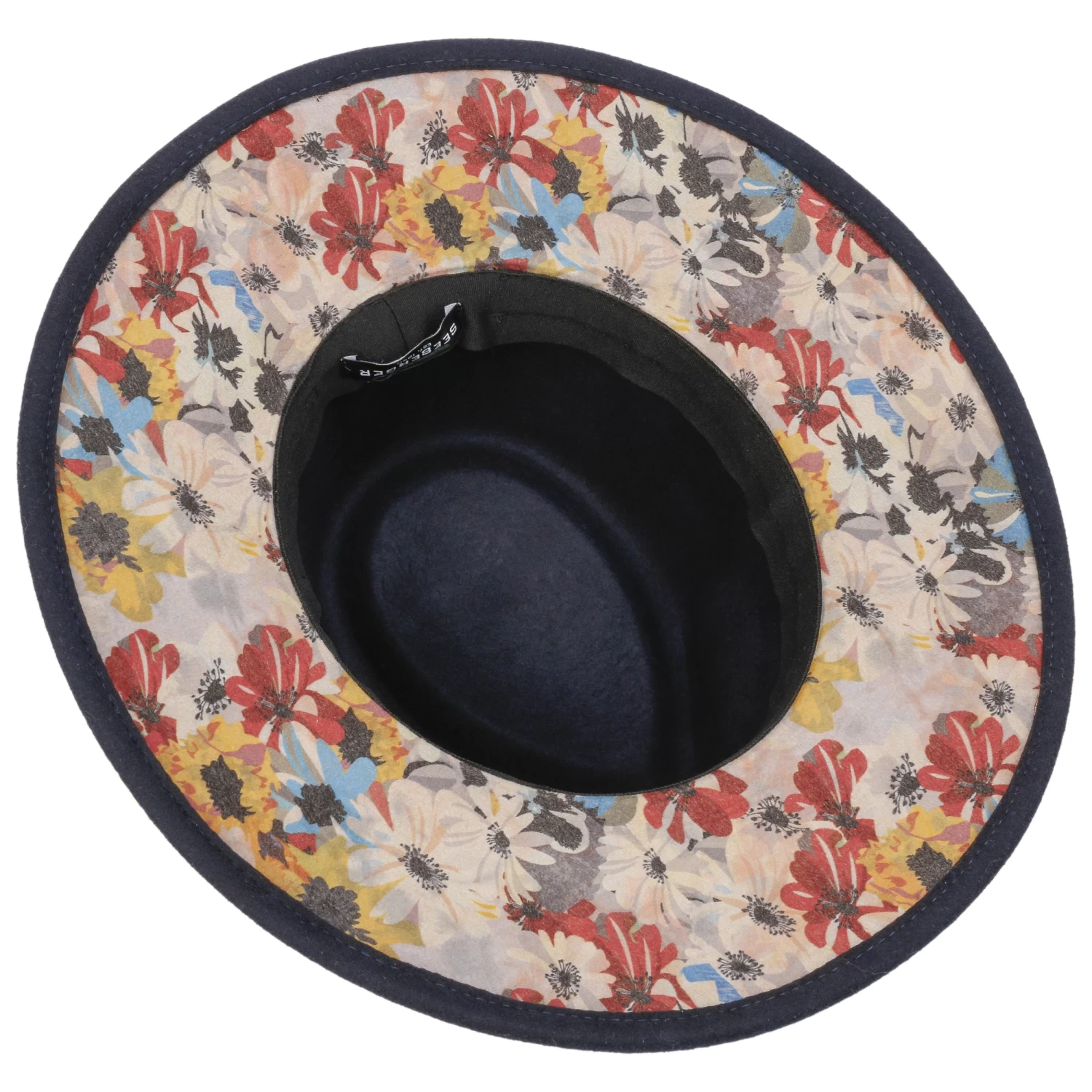 Die perfekte Kombination aus edlem Chic und lässigem Style machen den Travellerhut zu einem modischen Accessoire, das jeder Dame gut zu Gesicht steht. Die untere geblümte Krempenseite spiegelt eindrucksvoll den oberen Teil des Garniturbands und verleihen der aparten Kopfbedeckung das gewisse Etwas.
