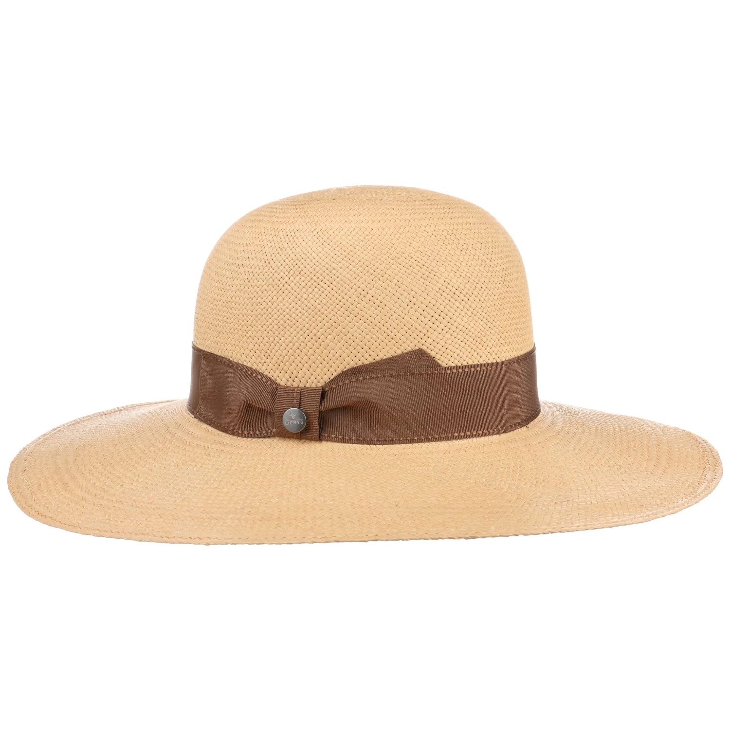 Mit seiner runden Krone und der großzügigen ausladenden Krempe zeigt sich der Sommerhut von Lierys formvollendet, durch die unifarbene Ripsbandgarnitur mit Schleife und Markenpin anmutig ergänzt.