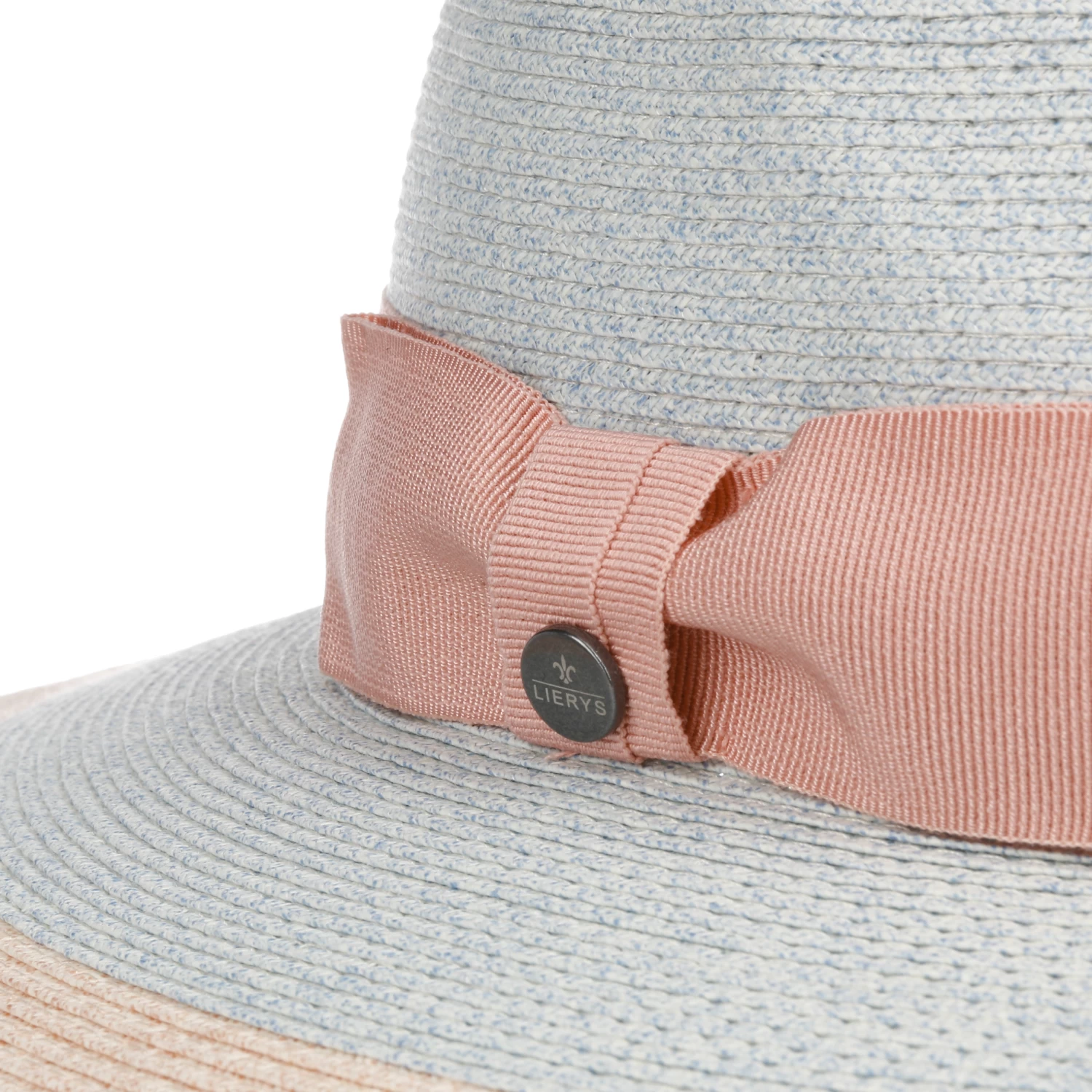 Ein Blickfang des Designs ist die schöne große Schleife, die auf dem zart schimmernden Ripsband der Kopfbedeckung platziert ist. Der romantische Charakter des Dekors steht im reizvollen Kontrast zu den tiefen Kniffen in der Krone, die an einen Westernhut erinnern.