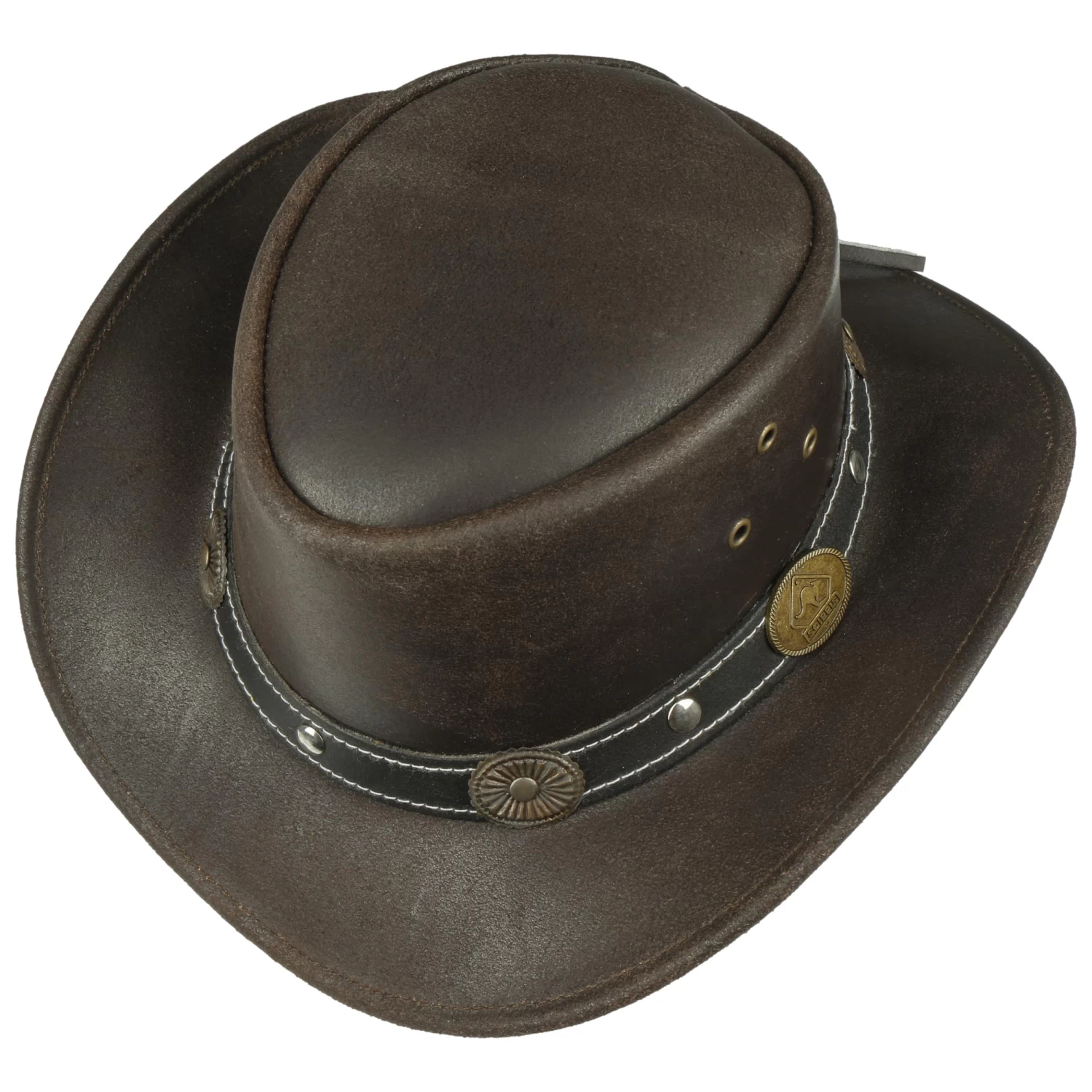 Die Conchos am exklusiven Nietenband sind die Blickfänger an diesem Lederhut für Kinder von Scippis.