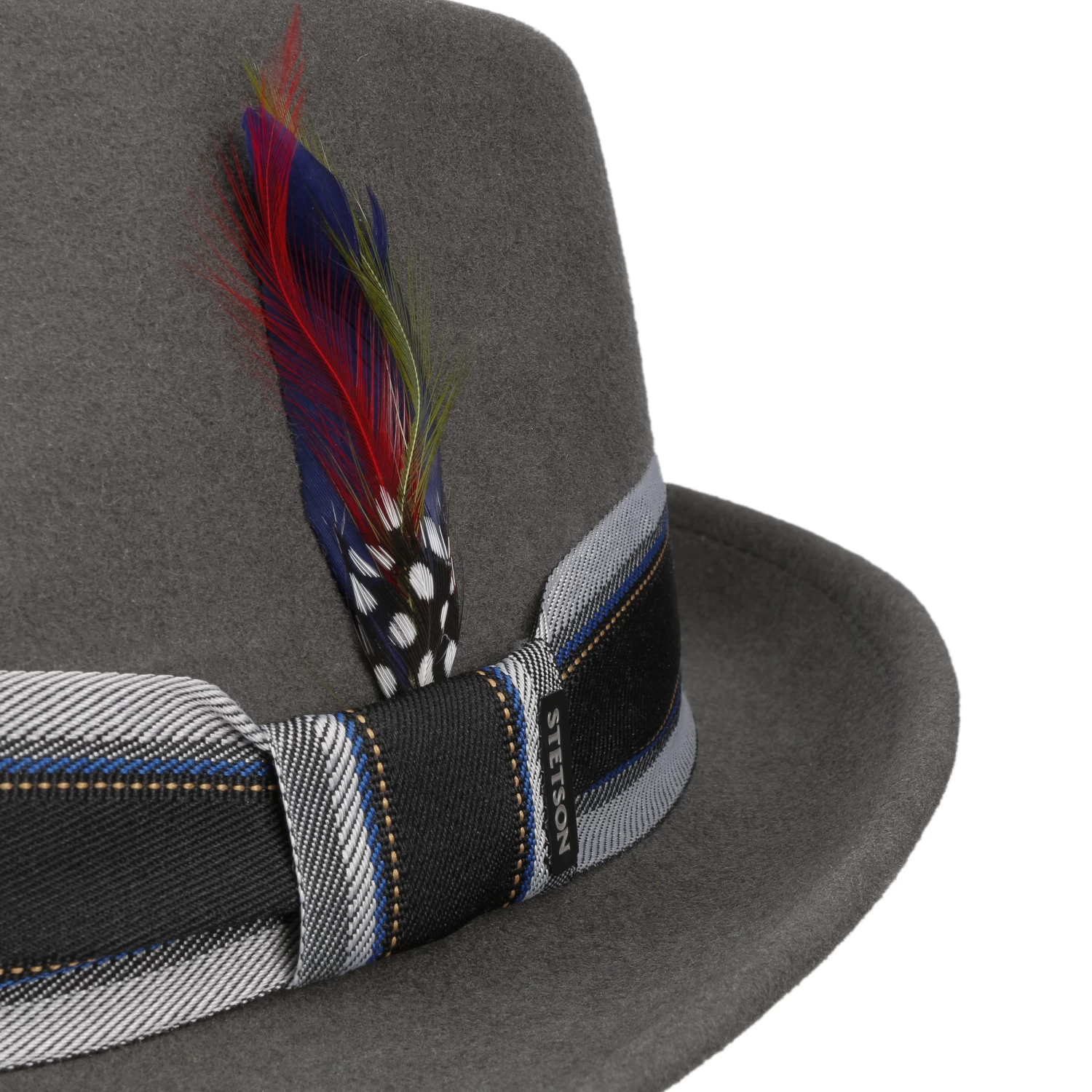 Markenqualität von Stetson: Hochwertige Wolle formt den ausdrucksstarken Trilby, vollendet durch anschmiegsames Futter aus Baumwolle, mit Markenschriftzug versehen.
