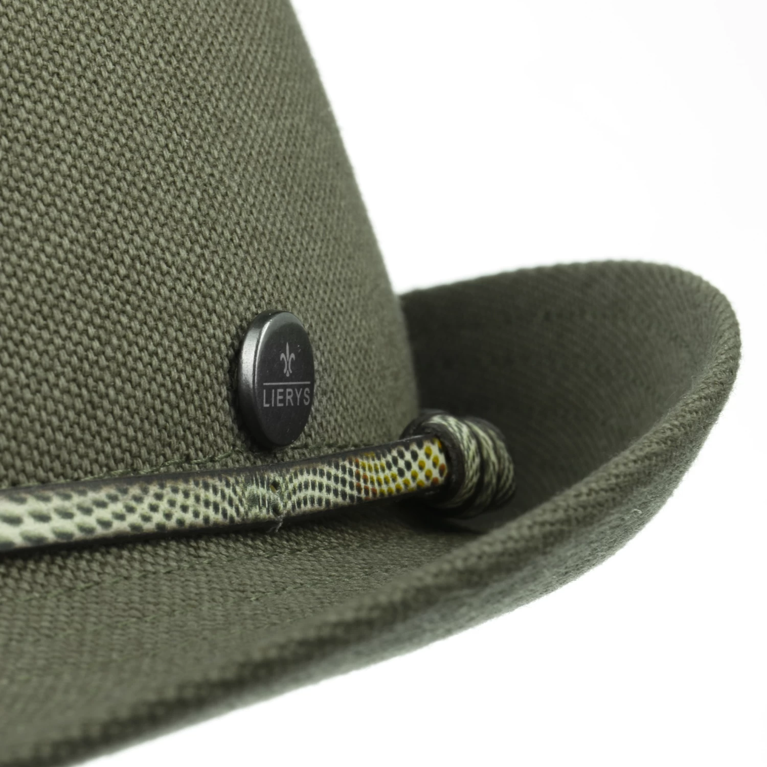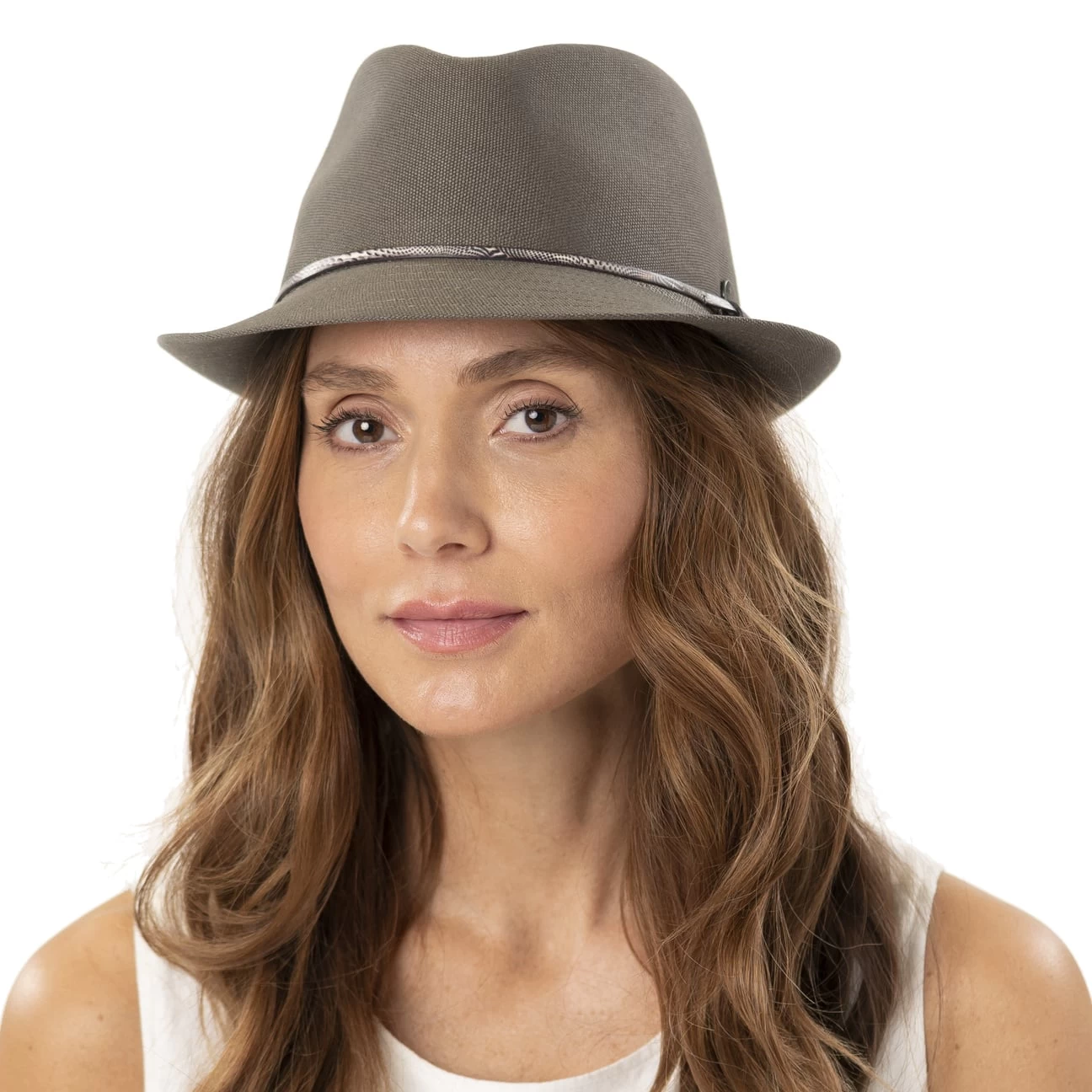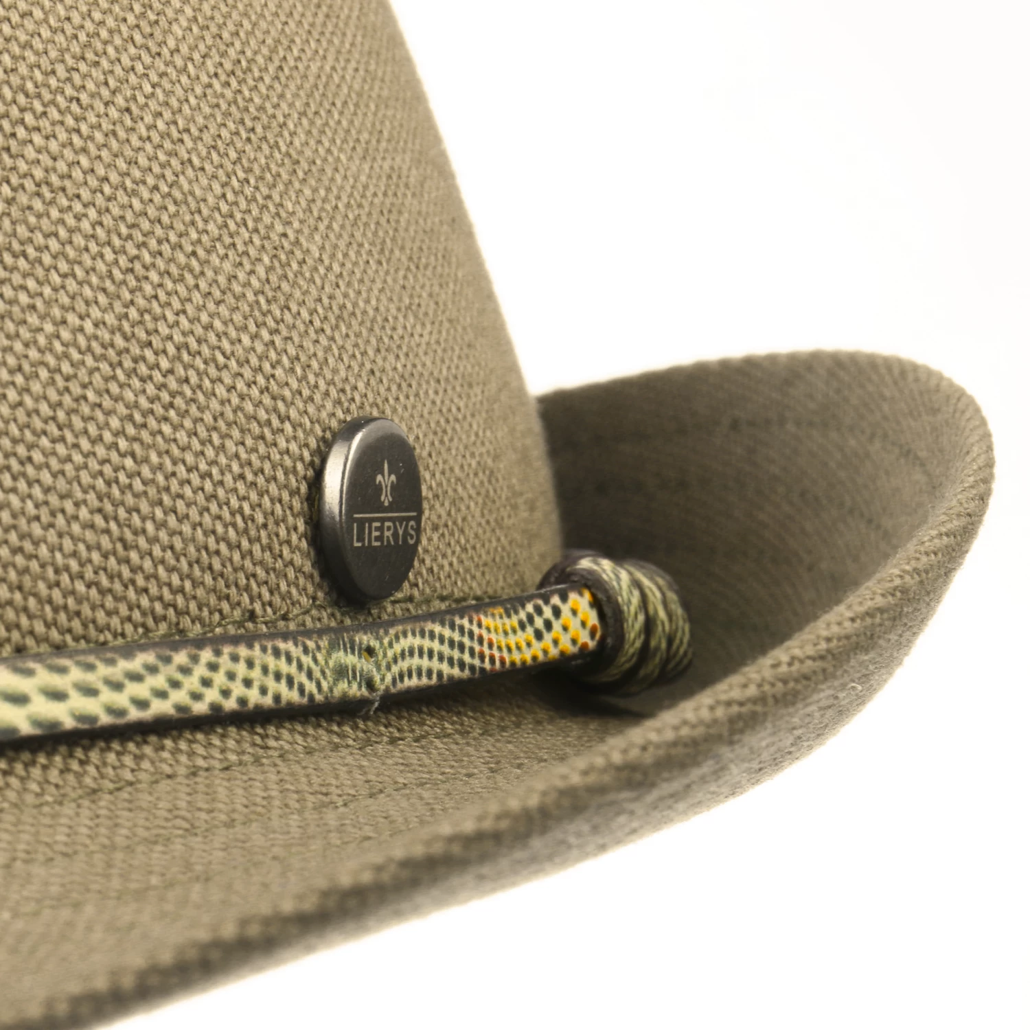 Im unifarbenen Look lässt er sich hervorragend zur gehobenen Alltagsgarderobe kombinieren und rundet auch den Anzug gelungen ab. 100% griffige Baumwolle verleiht dem Trilby nicht nur eine angenehme Haptik, sondern auch atmungsaktive Eigenschaften. Die schmale Kordelgarnitur mit Animal-Print bringt eine lässige Note ins Design.