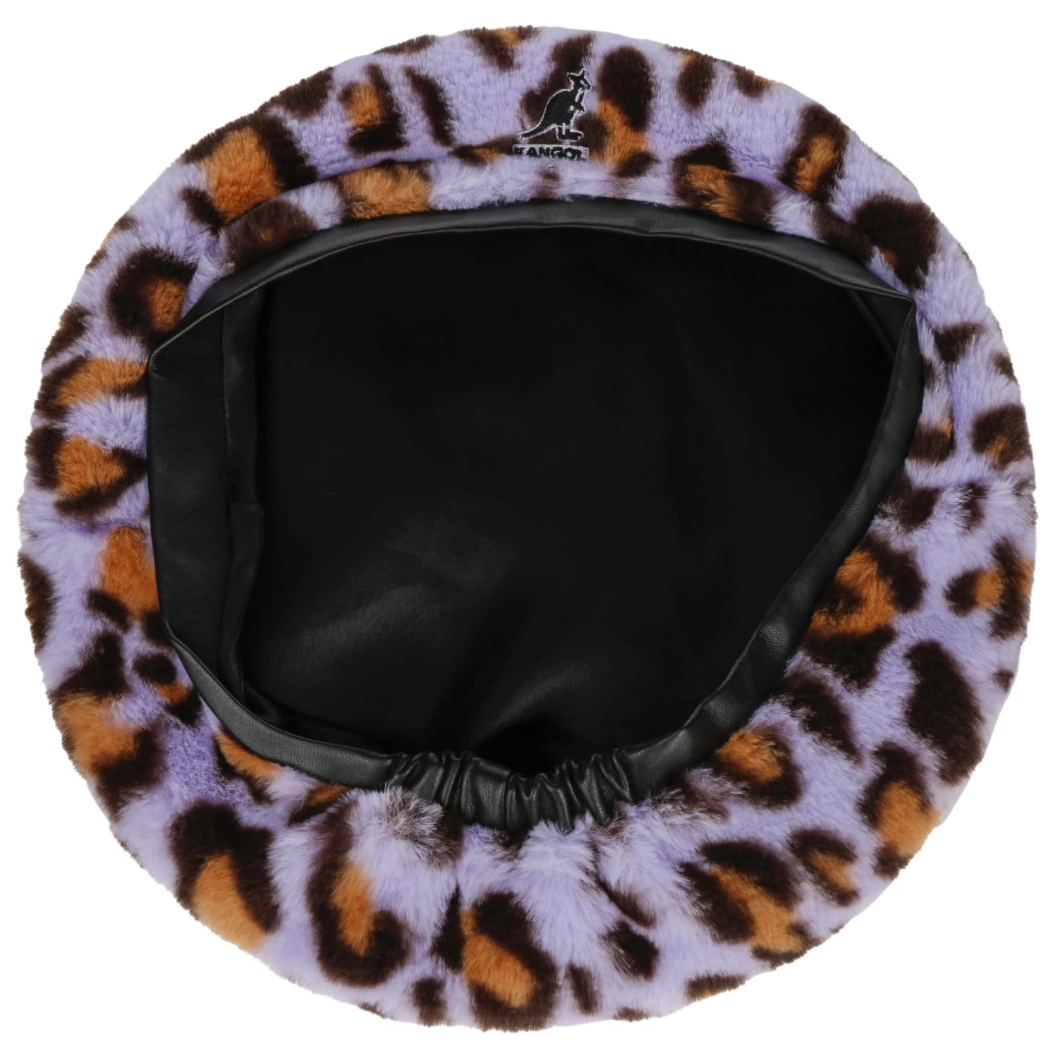 Flauschweiches Obermaterial mit gelungenem Animal-Print zeigt, wie tierisch gemütlich die Baske der Marke Kangol auf dem Kopf sitzt.
