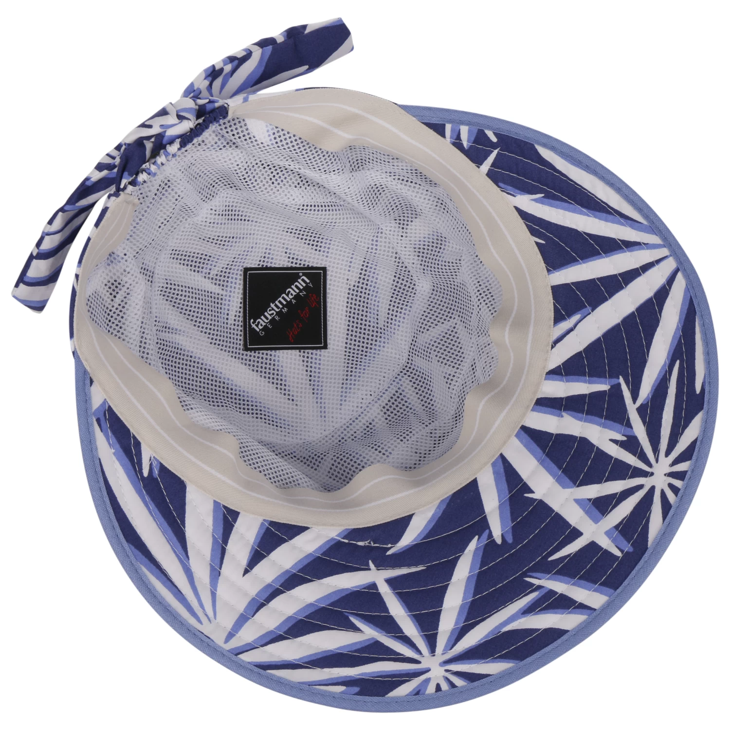 Die sternförmigen Blattformen geben dem leichten Visor einen exotischen Touch, der ideal zu leichter Sommergarderobe passt.