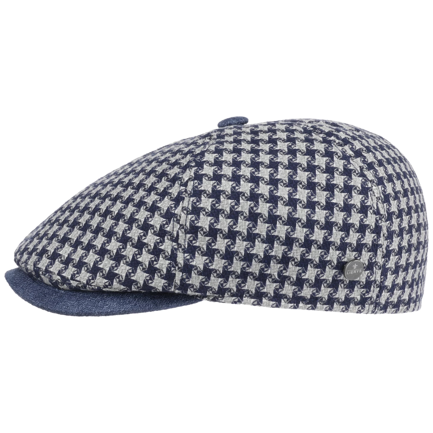 Die Schiebermütze aus dem Hause Lierys vereint ihren klassischen, sechsteiligen Zuschnitt mit einem modern anmutenden Allover-Muster und meliert abgesetzten Schirm.