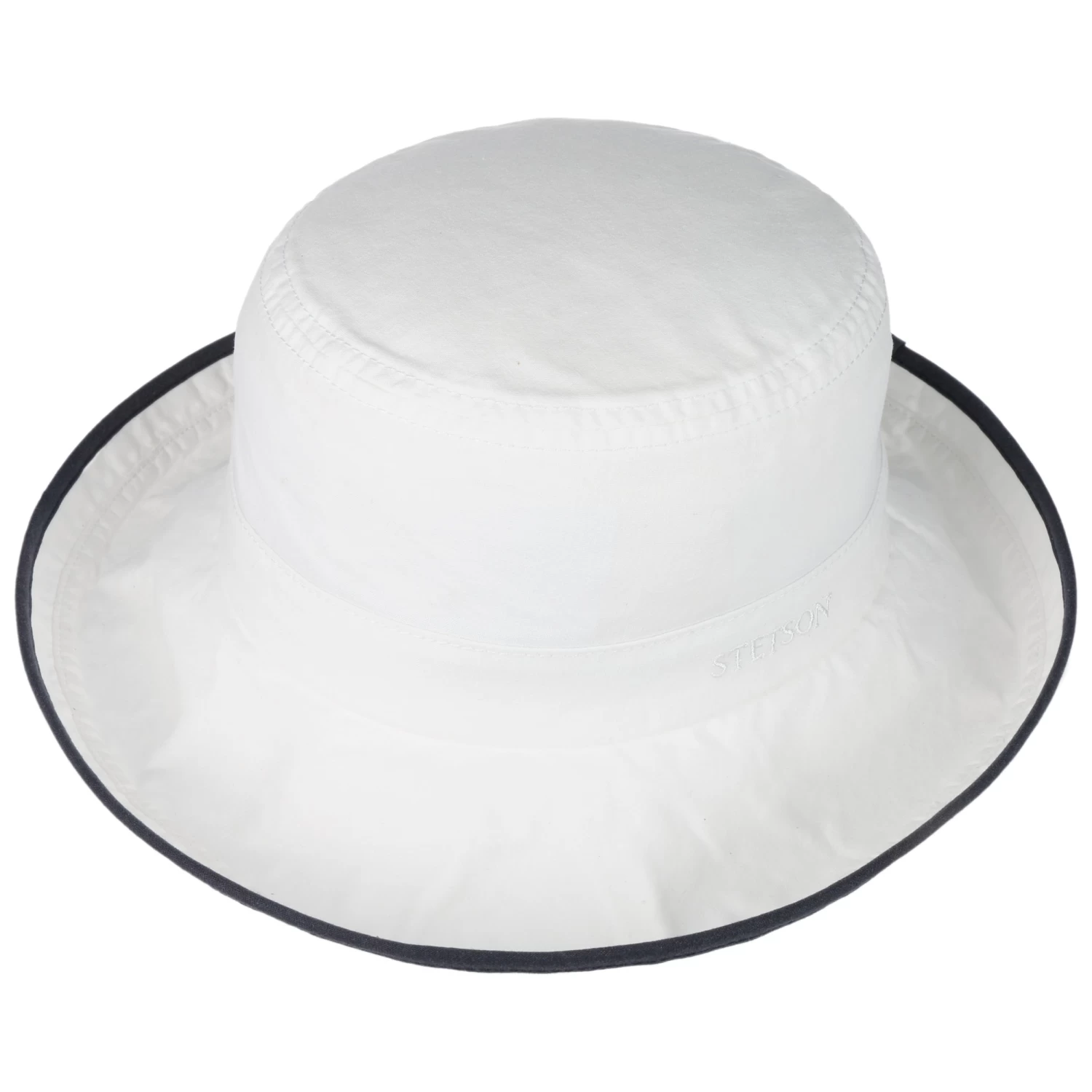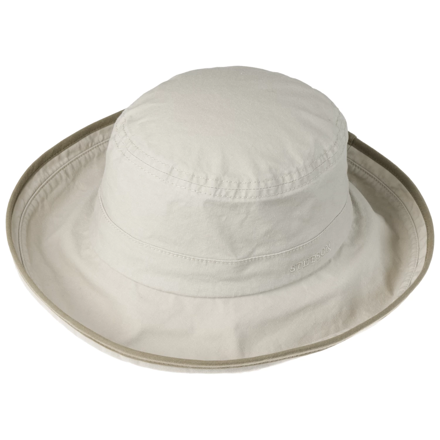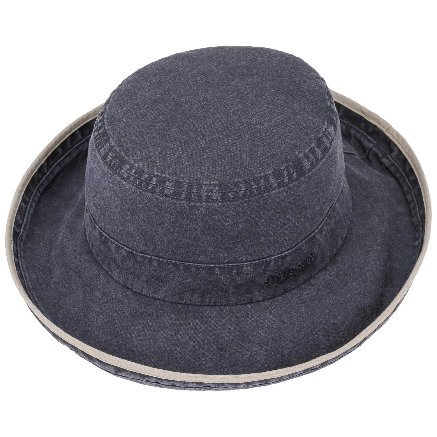 100% Baumwolle mit integriertem 40-fachen UV-Schutz macht den zweifarbigen Schlapphut von Stetson rundum fit für sonnige Tage.