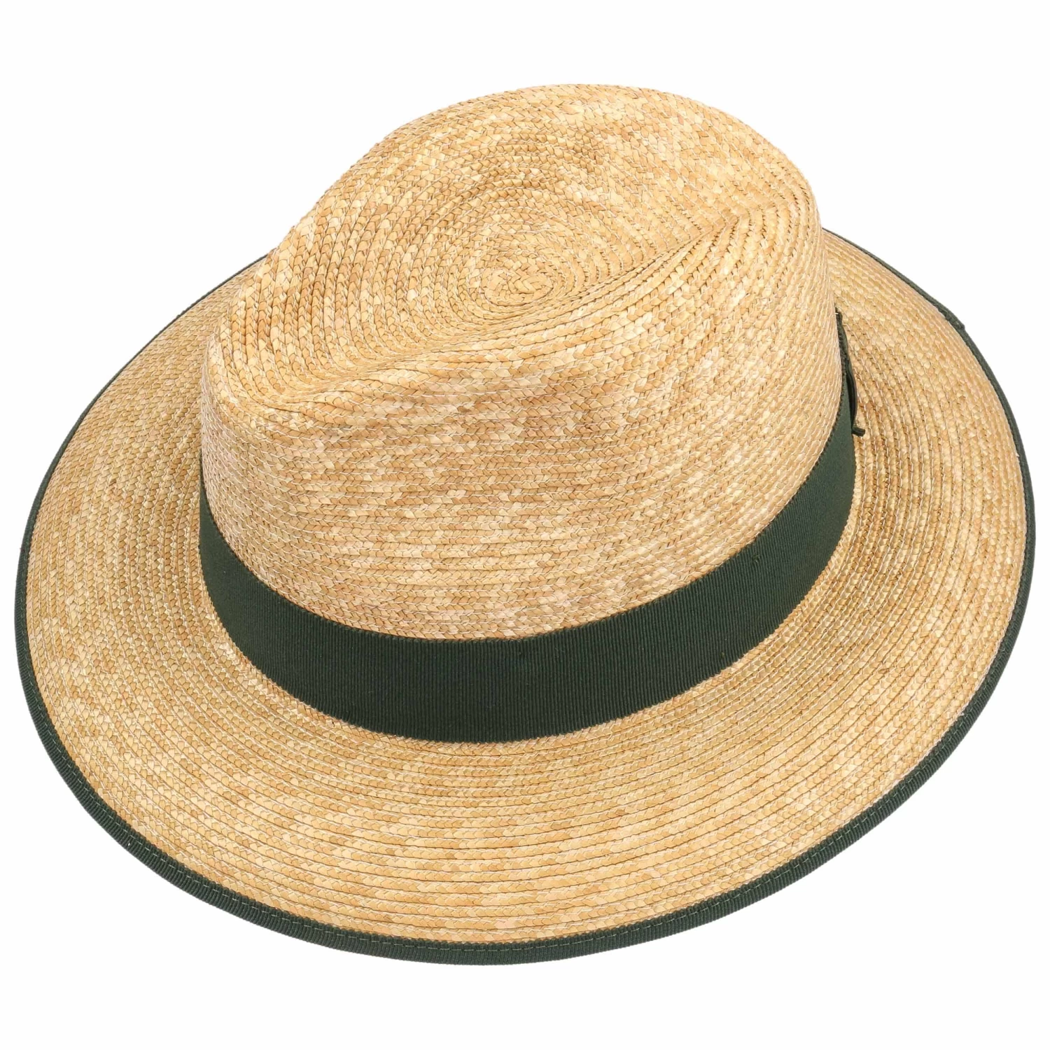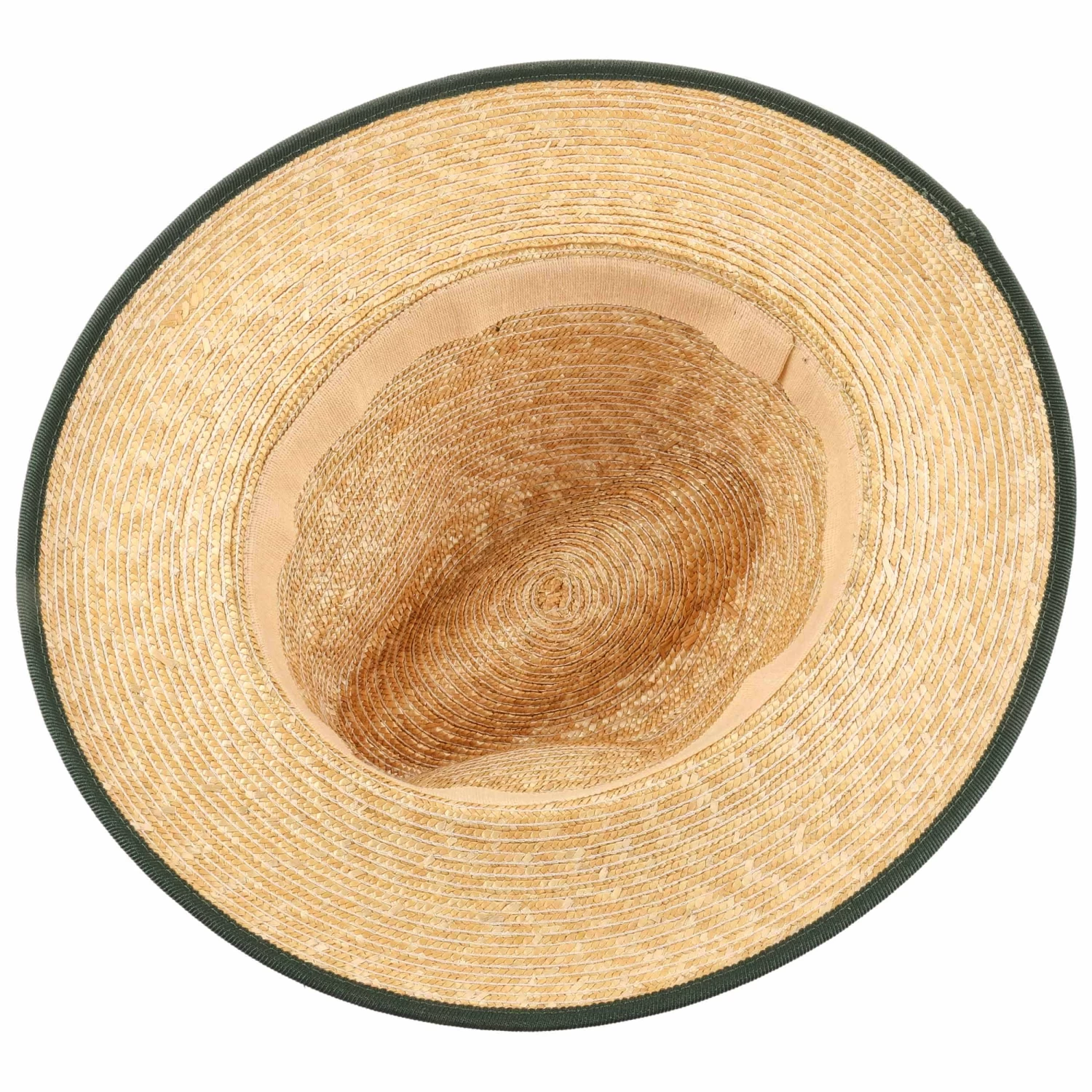 Für sein geringes Gewicht und den sommerlichen Look sorgt in erster Linie das Geflecht aus 100% naturbelassenem Stroh. Tiefe Einbuchtungen im Kopfteil und farblich abgesetzte Akzente wie das breite Garniturband intensivieren den dynamischen Eindruck, den die Kopfbedeckung hinterlässt.