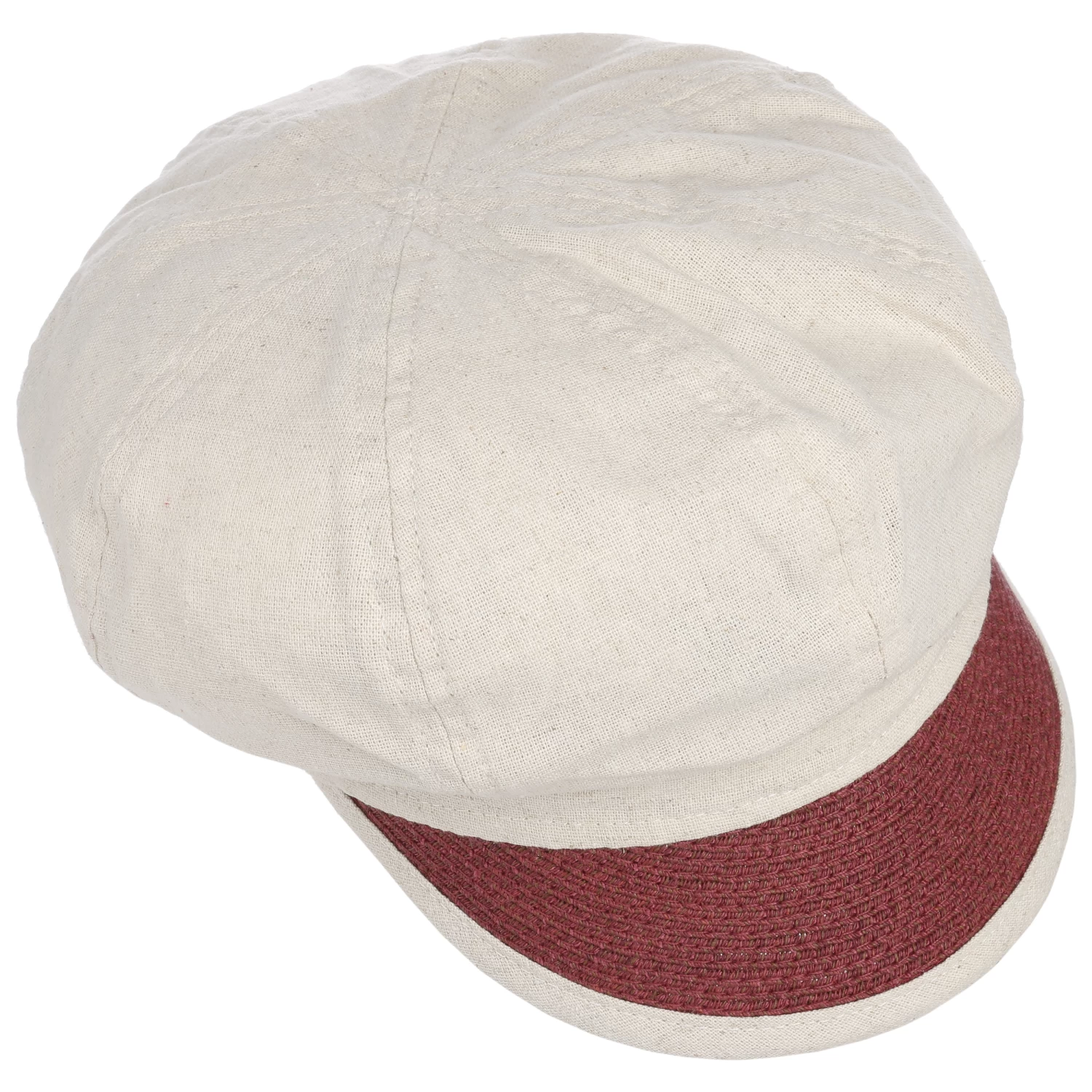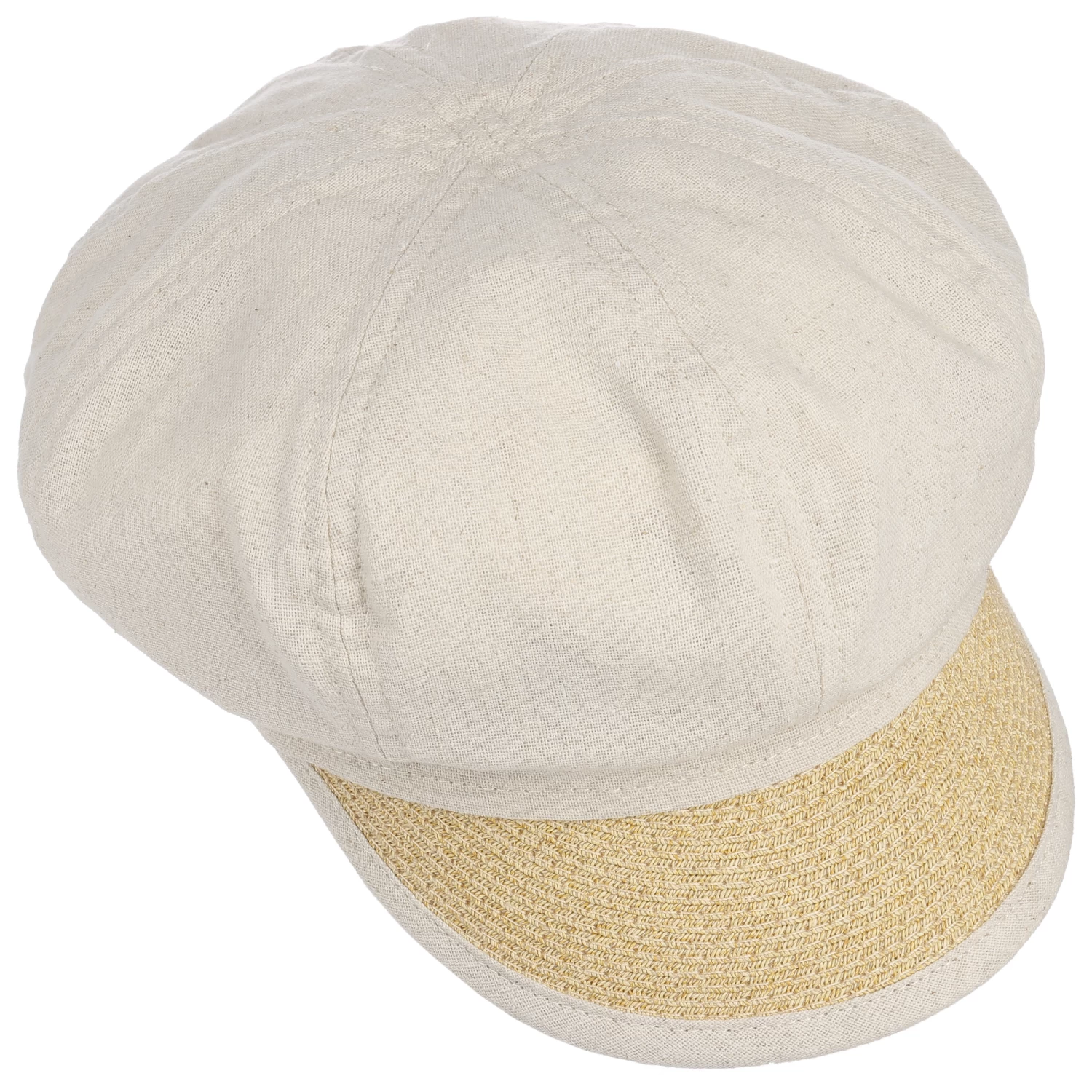 Das Kopfteil besteht aus einer Leinen-Baumwollmischung und wartet mit klimaregulierendem sowie atmungsaktivem Komfort auf. Das Visor spendet dem Gesicht wohltuenden Schatten und ist aus leichtem Papierstroh mit Einfass gefertigt. Auch das Design der Schildmütze strahlt sommerliche Frische aus.