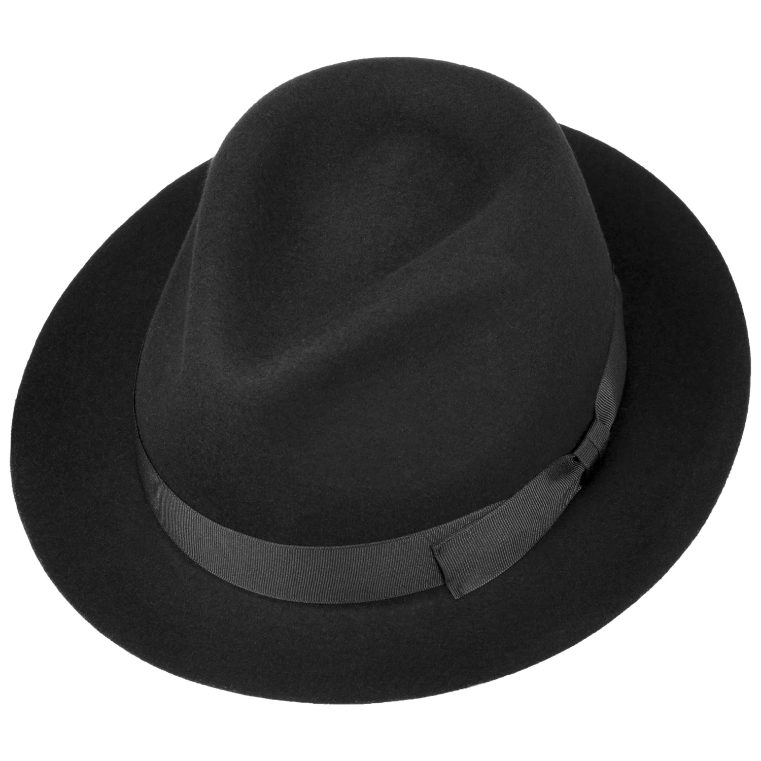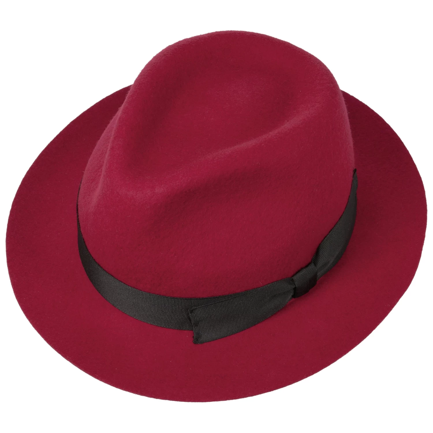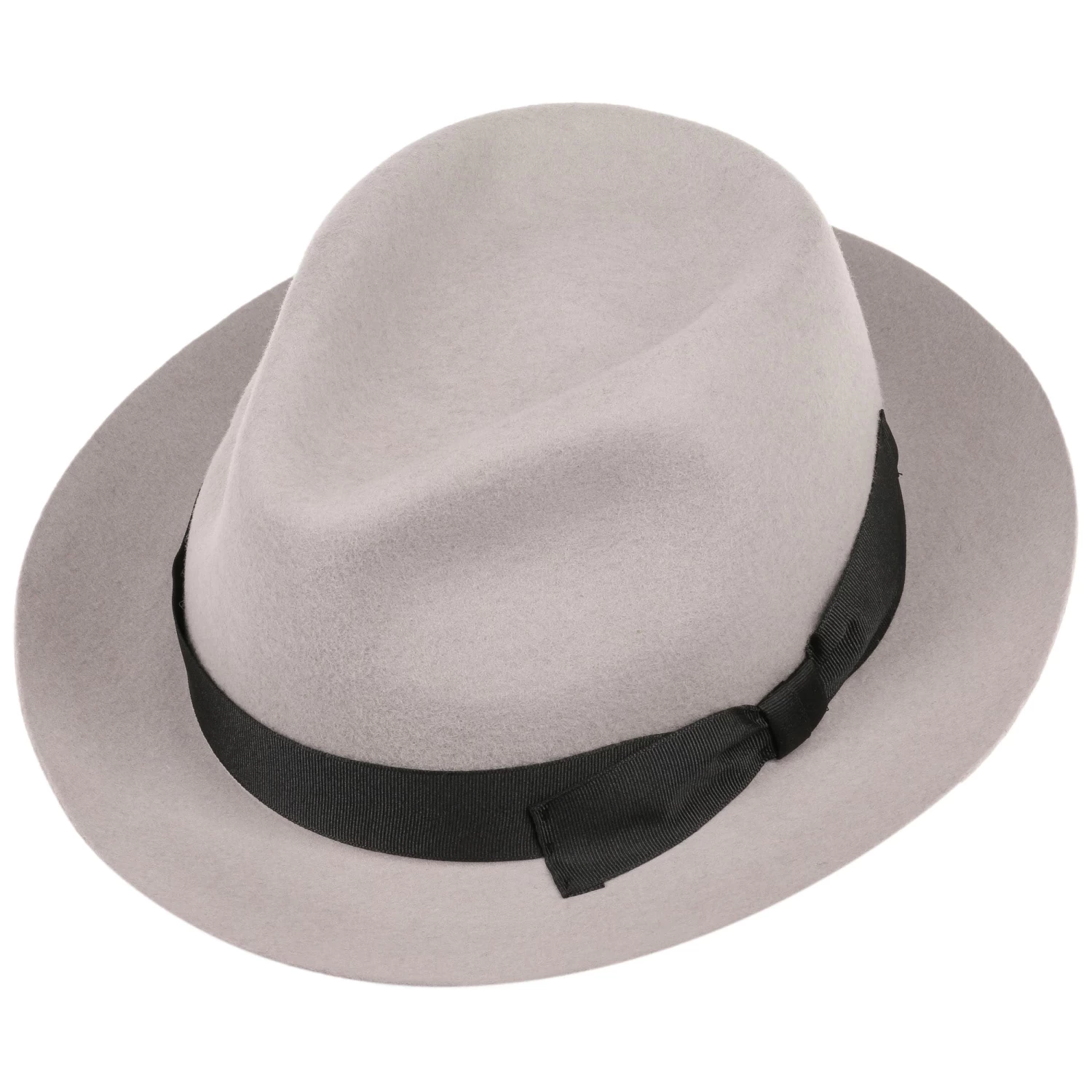 Geschmeidiger Wollfilz formt sich zu dem Fedora mit trendig eingedellter Krone und kontrastfarbener Ripsbandgarnitur mit asymmetrischer Schleife. Ein ideal kombinierbares optisches Highlight mit geschmackvollem Charme, das Ihr und Ihm gut zu Gesicht steht.
