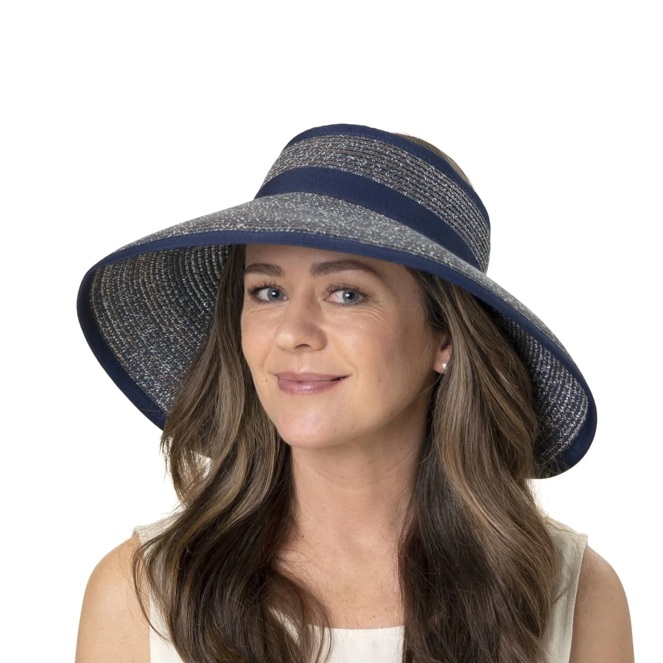 Der Materialmix mit Papierstroh macht diesen ausladenden Visor leicht und angenehm zu tragen.