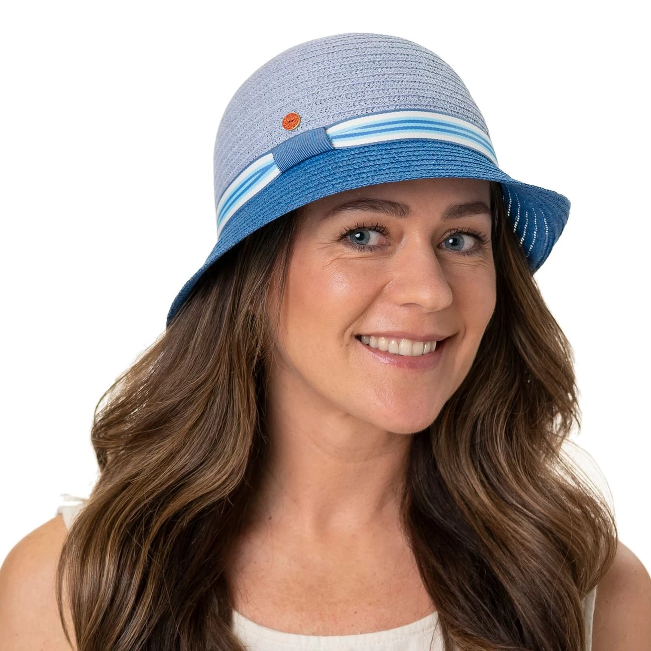 Ein leichter, flexibler Materialmix mit Papierstroh stattet den Glockenhut von Mayser mit angenehmem Tragegefühl für den Sommer aus, unterstützt von einem bequemen Stretchfutterband.