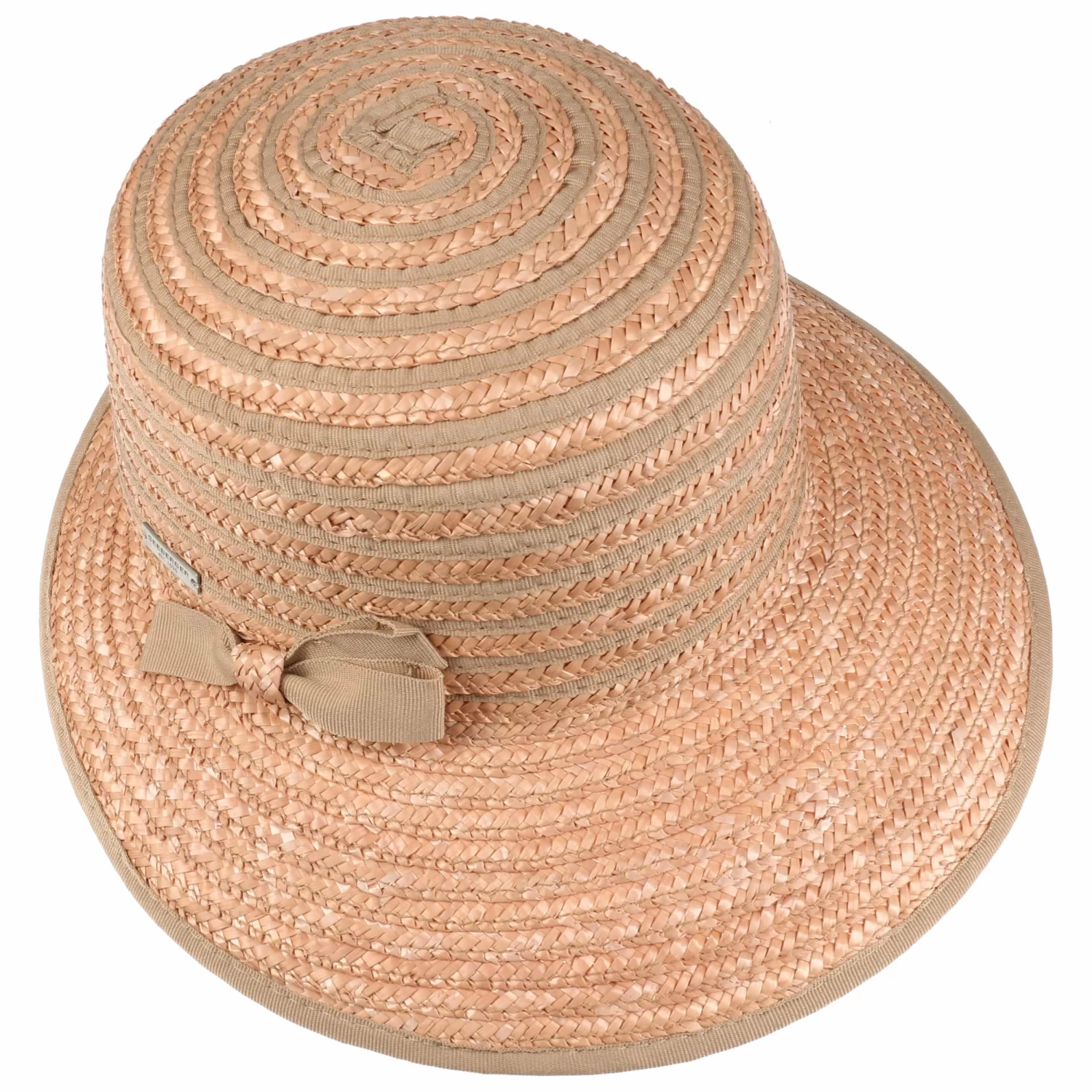 Eine tolle sommerliche Alternative ist die Cap von Seeberger, die sich aus geflochtenen Strohborten und Stoffstreifen zusammensetzt. Mit sommerlicher Leichtigkeit und Stretchfutterband sitzt die Strohcap ungemein bequem, um mit UV-Schutz 50+ vor der Sonne zu schützen. Ihren edlen Feinschliff erhält sie durch die zierende Schleife sowie die Einfassung um den großen, Schatten spendenden Visor.