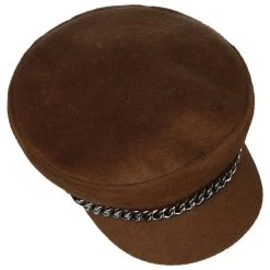 Statt einer Kordel schmückt eine glänzende Kette den Stirnbereich und wird zum Hingucker über dem 5 cm langen Visor. Die gefütterte Filzmütze ist in Einheitsgröße hergestellt, passt sich aber durch das eingenähte Stretchfutterband einer Vielzahl von Kopfgrößen an.