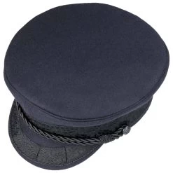Die markanten Kennzeichen, wie die Eichenlaubbordüren entlang des hohen Stegs und der Schirmkante sowie die doppelte Seidenkordel mit Zierknöpfen, machen die Mütze besonders authentisch und originell. Gern als Alternative zum Elbsegler getragen.