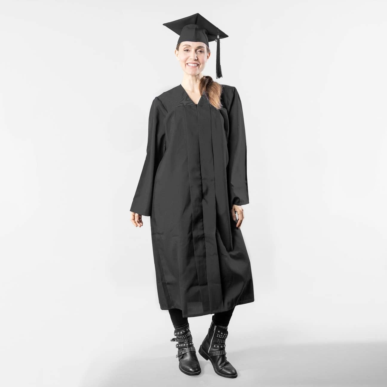 Wer seinen Abschluss angemessen mit Doktorhut feiert, trägt den passenden unifarbenen Talar, um die Auszeichnung würdevoll entgegenzunehmen.
