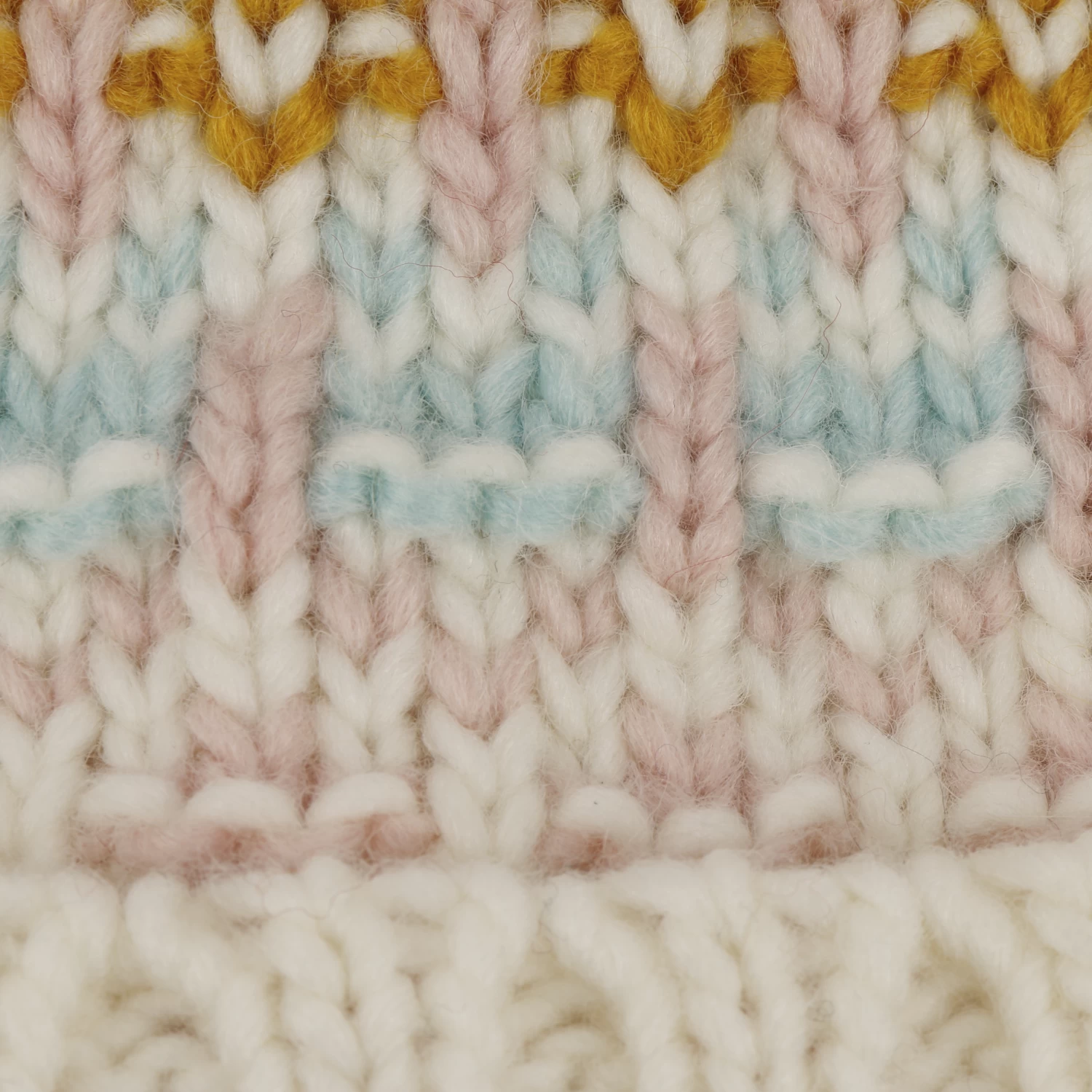 Die farbenfrohe Strickmütze von Seeberger lacht grauen Wintertagen einfach ins Gesicht.