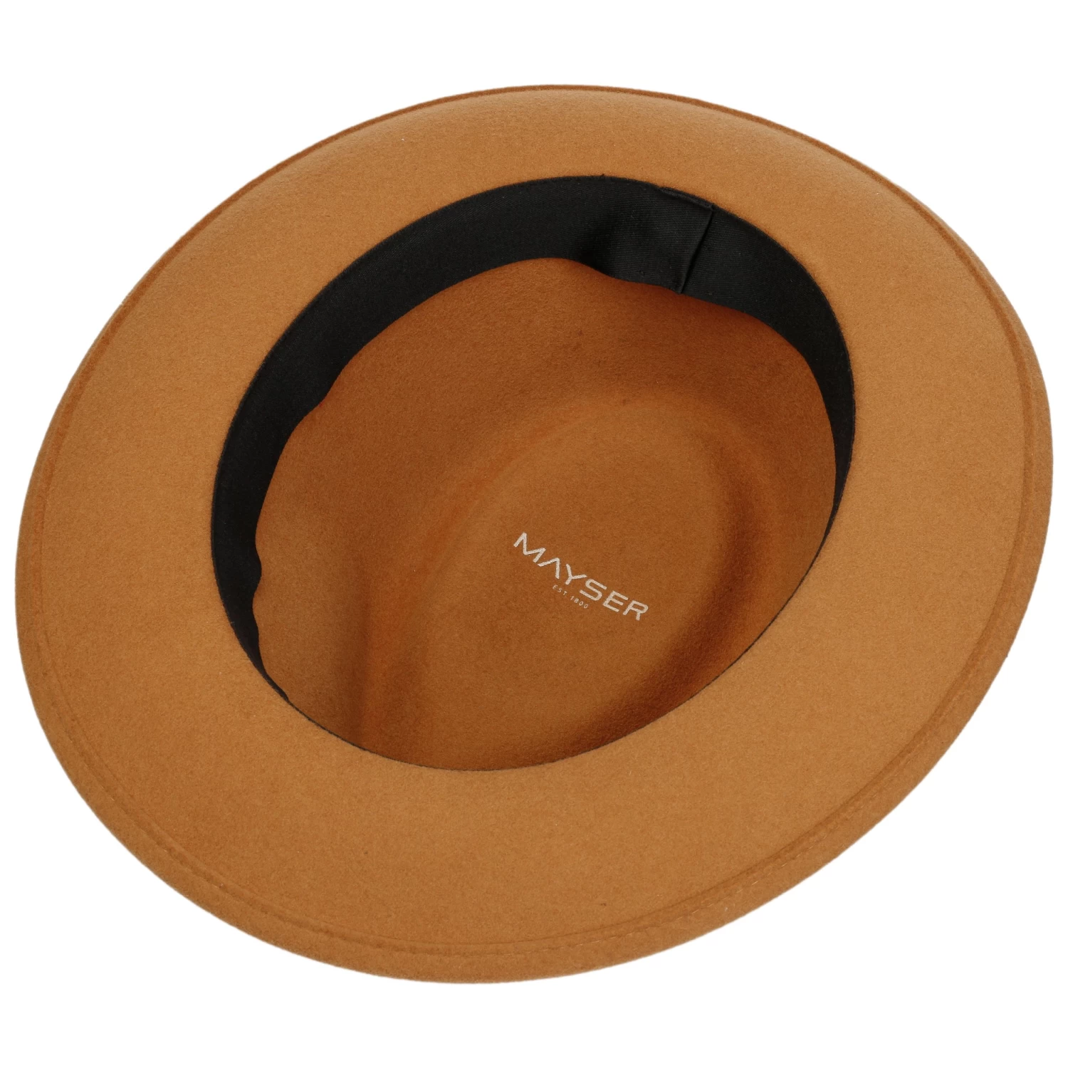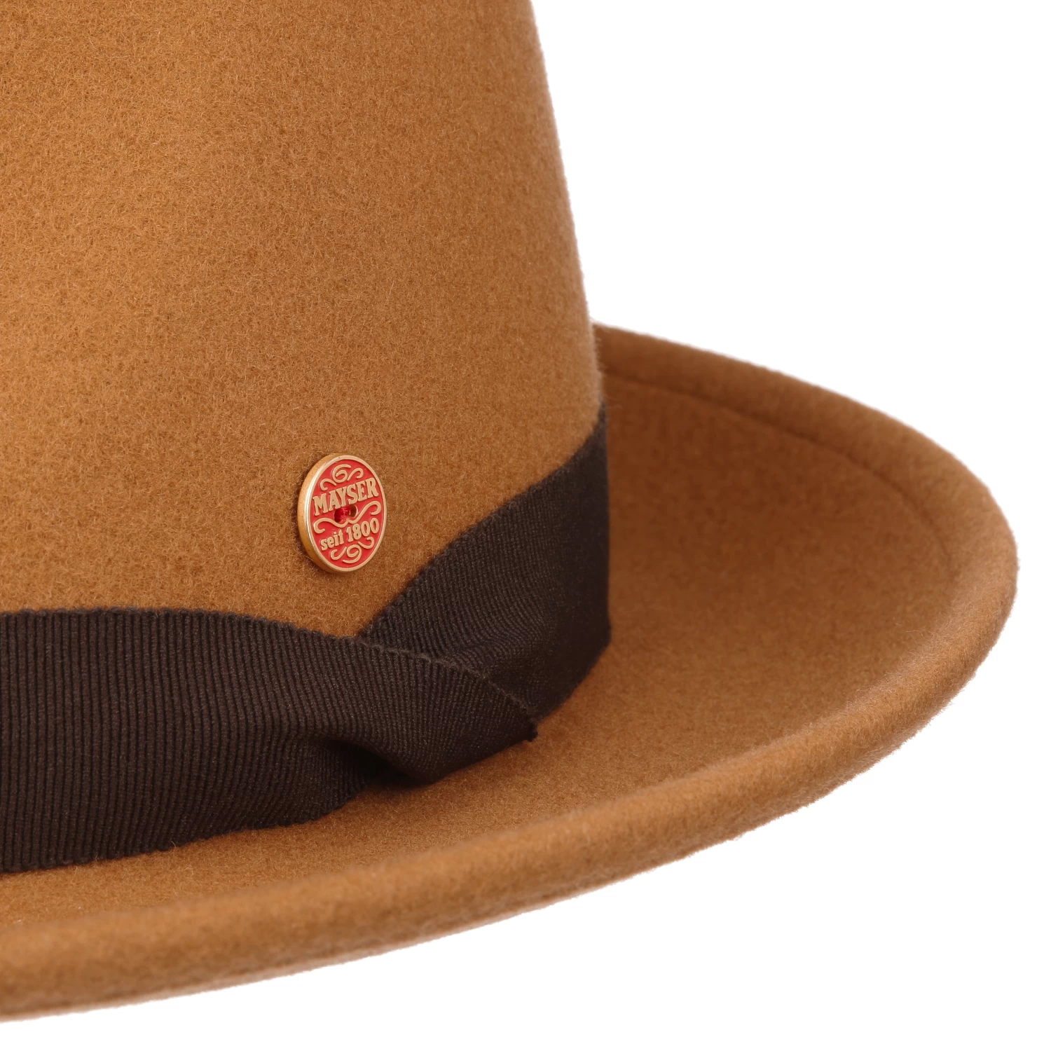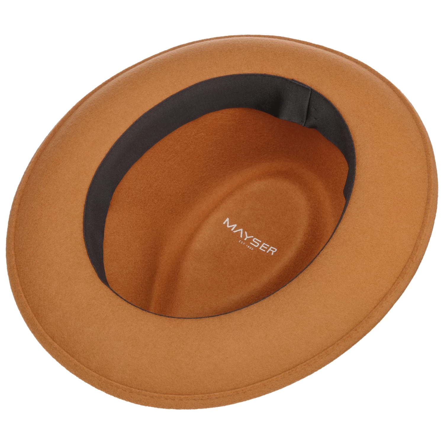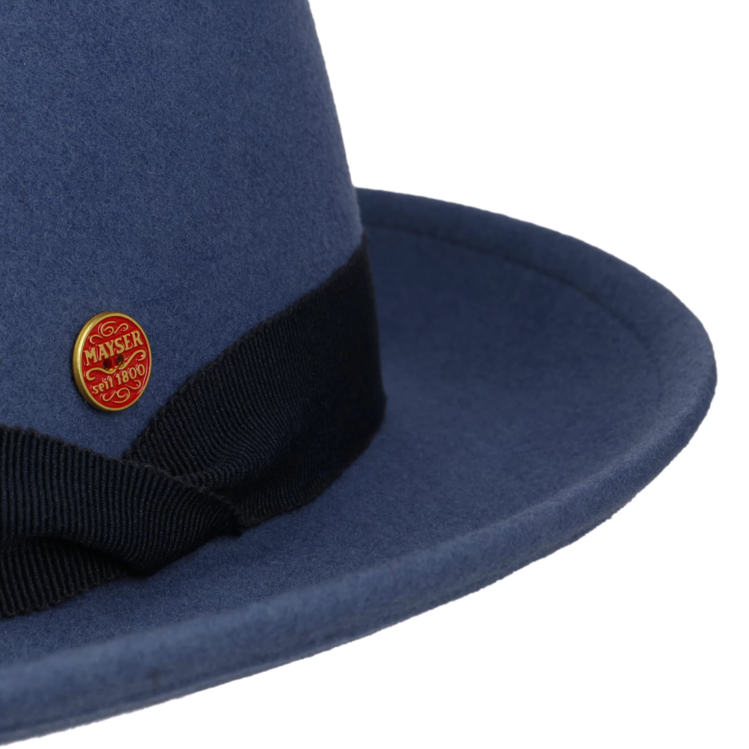 In ausgesuchtem unifarbenem Erscheinungsbild zeigt sich der Fedora von Mayser, aus Wollfilz gefertigt, was ihm einen geschmeidigen Griff nebst angenehmem Tragegefühl verschafft.