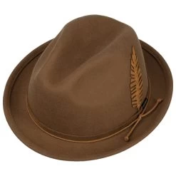 In der charakteristischen Form eines Trilbys setzt sich der unifarbene Filzhut mit der authentischen Ledergarnitur auf den Kopf und überzeugt mit exzellenter Qualität: Asahi-Guard ®-Qualität mit der speziellen Flouresin-Beschichtung macht den knautschbaren, atmungsaktiven Pork Pie zu einem wasserabweisenden sowie Schmutz, Staub und Ölflecken gegenüber resistenten Begleiter, dessen Schönheit den Umwelteinflüssen trotzt.