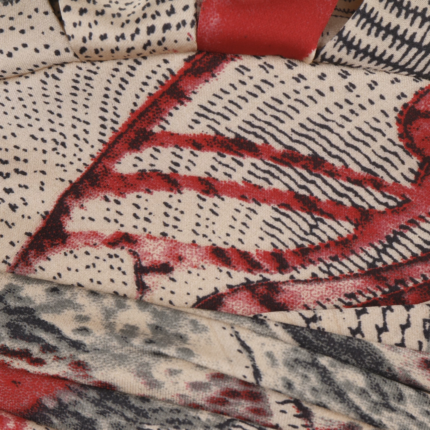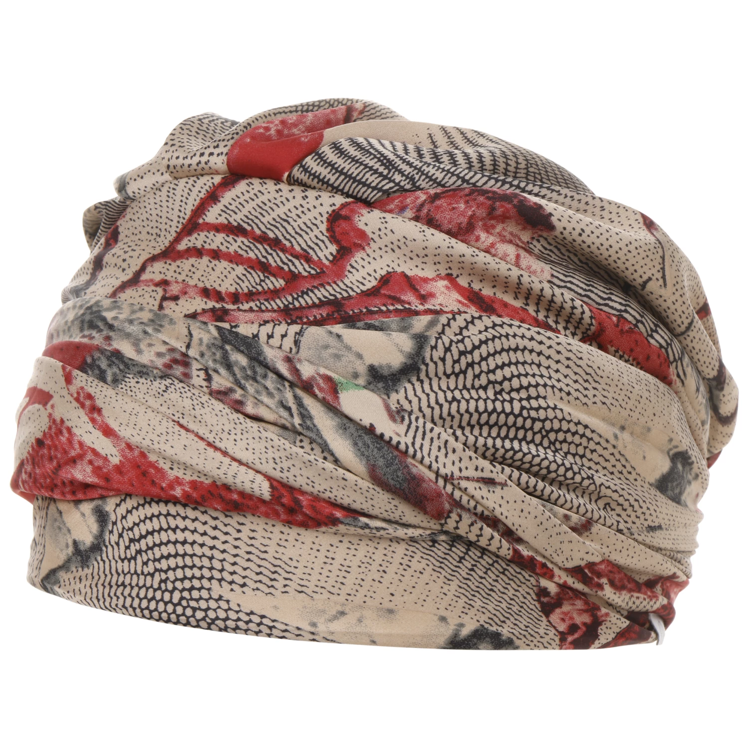 In verschwenderischer Fülle legt sich das Tuch mit dem aparten Muster um den Kopf, wo es sich dank eines Elasthananteils angenehm und sicher anschmiegt.