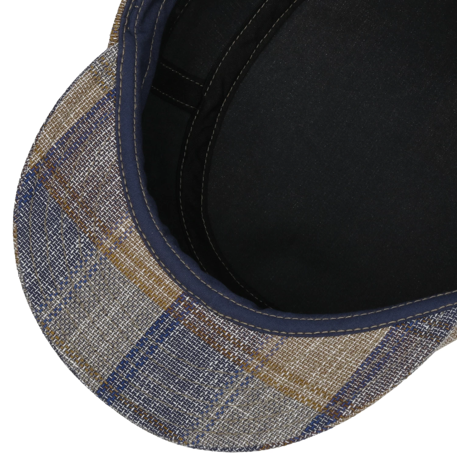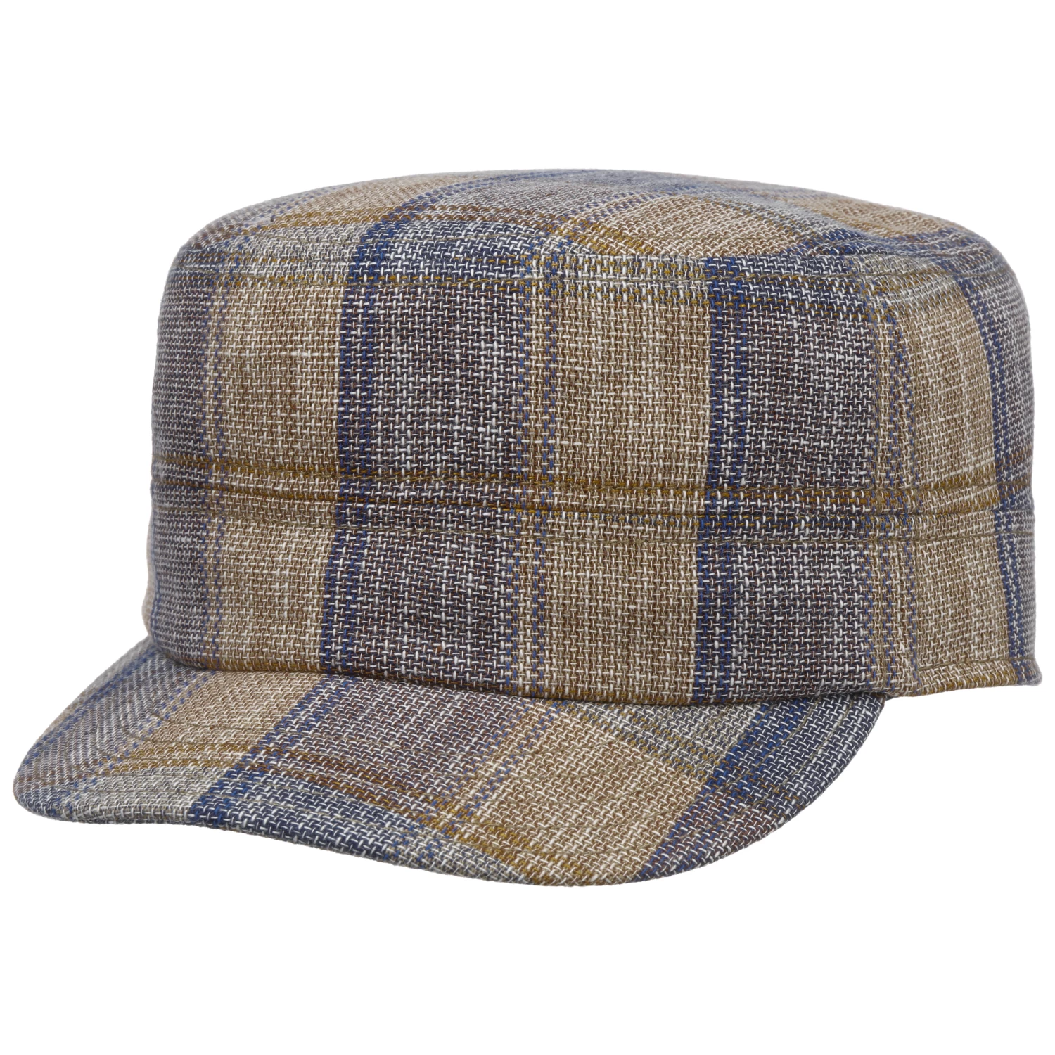 Baumwolle kombiniert sich mit Leinen zu der melierten Armycap im Karodesign.