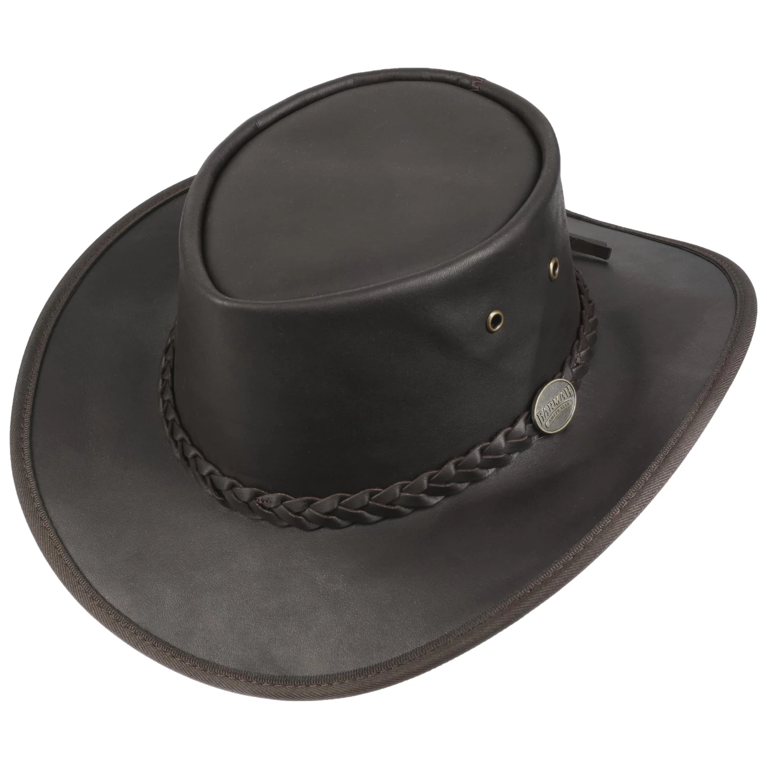 Diesen zusammenfaltbaren Hut aus imprägniertem Rindsleder können Sie auf alle Reisen mitnehmen.