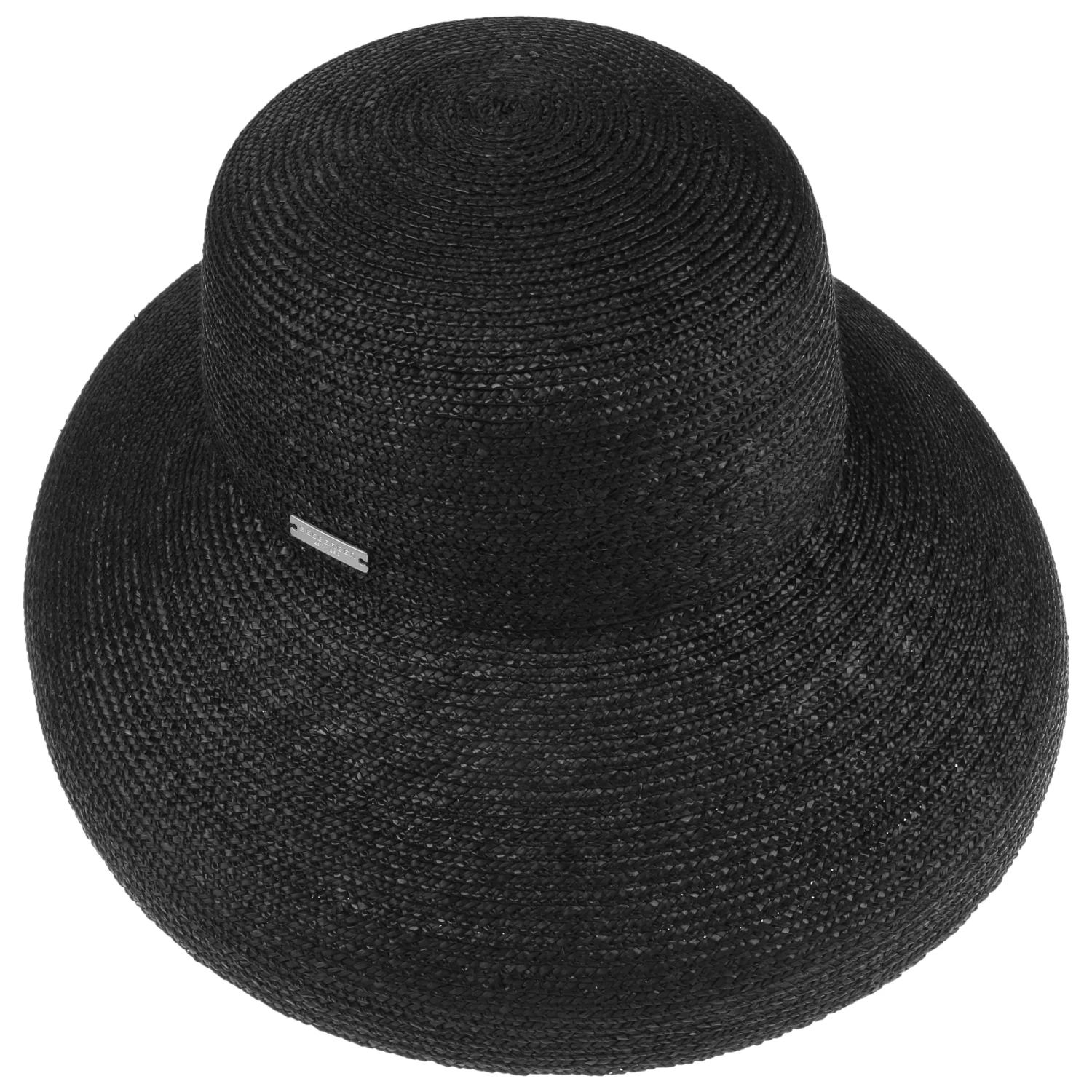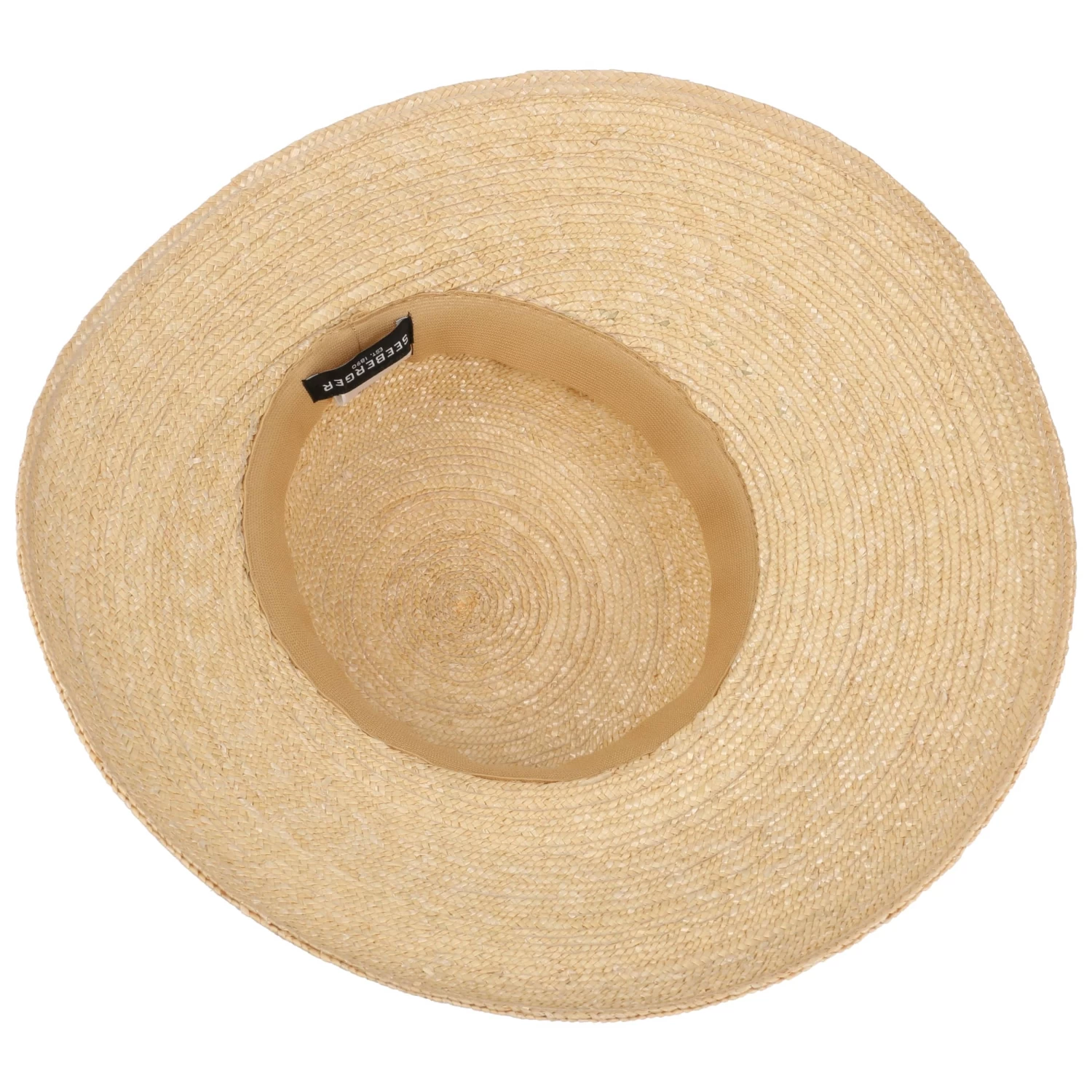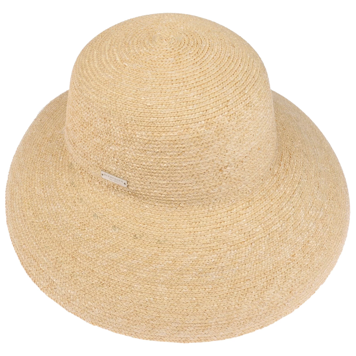 Feinsinnig anmutende Formen verleihen dem hochwertigen Design eine feminine Eleganz, die gleichermaßen unbeschwert und selbstbewusst wirkt. Die breite Krempe, deren Frontseite deutlich verlängert ist, bietet der Trägerin des schönen Sonnenhutes großzügig Schatten.