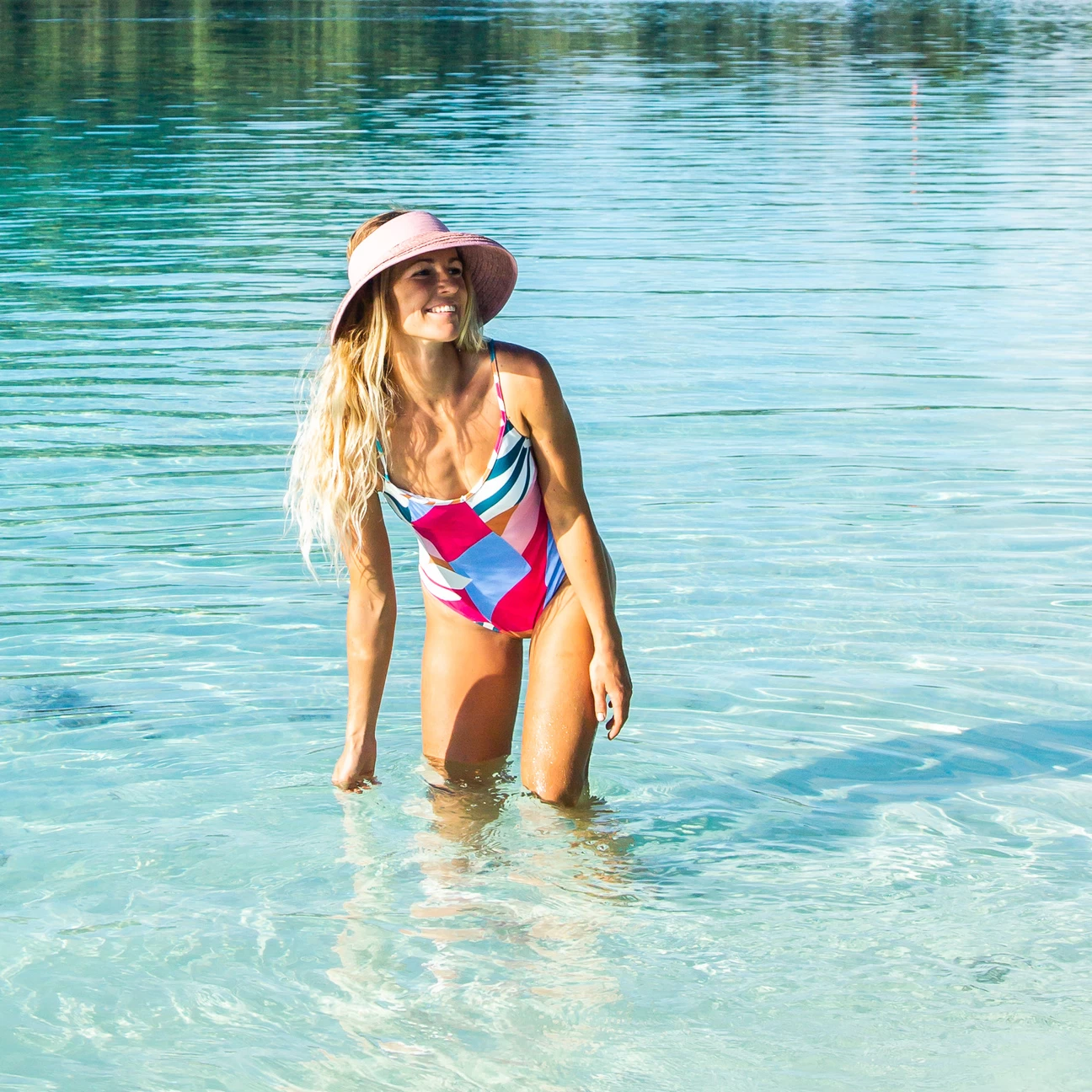 Dicht geflochtene Strohfasern halten blendende Sonnenstrahlen aus dem Gesicht. Das Haupt bleibt frei und kann einen kühlenden Luftzug genießen. Das farbig abgesetzte Garniturband und der Paspeleinfass um die Krempe schaffen aparte Kontraste.