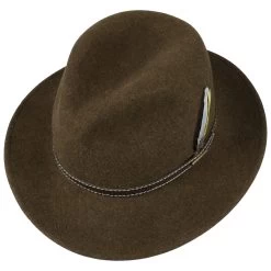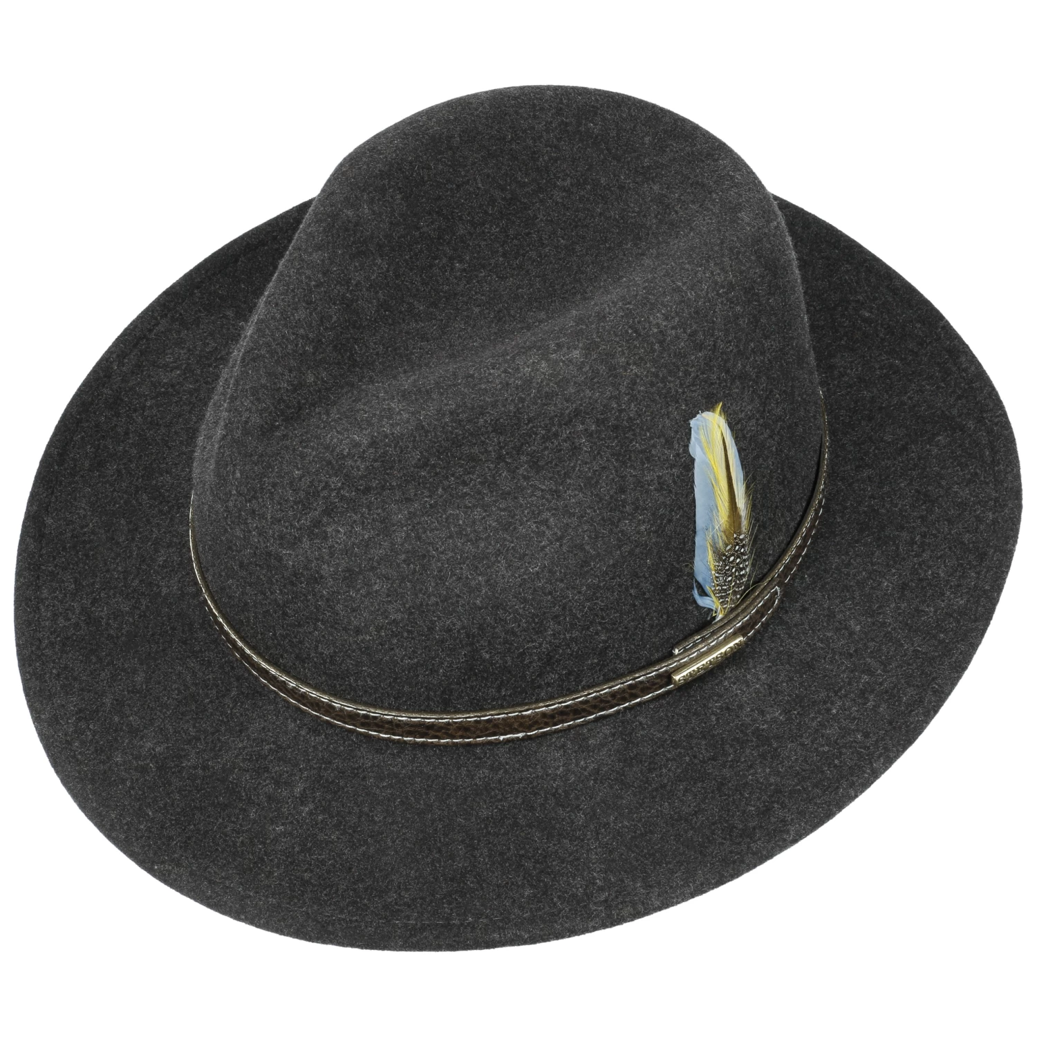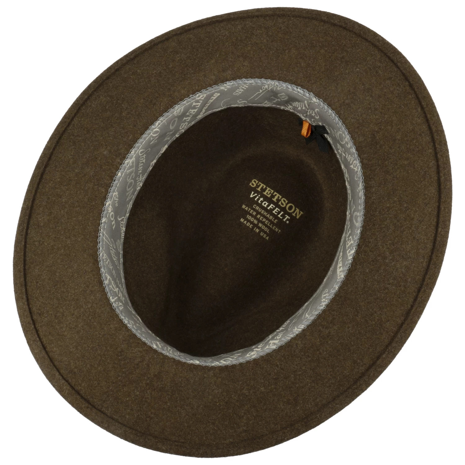 Der strapazierfähige Outdoorhut ist aus 100% Wollfilz (VitaFelt) in sorgfältiger Handarbeit hergestellt. VitaFelt steht für besonders pflegeleichte und robuste Produkteigenschaften. Der Regenhut ist wasserabweisend, knautschbar und sehr leicht. Der unifarbene Hut ist mit einem schmalen Garniturband aus Leder versehen.